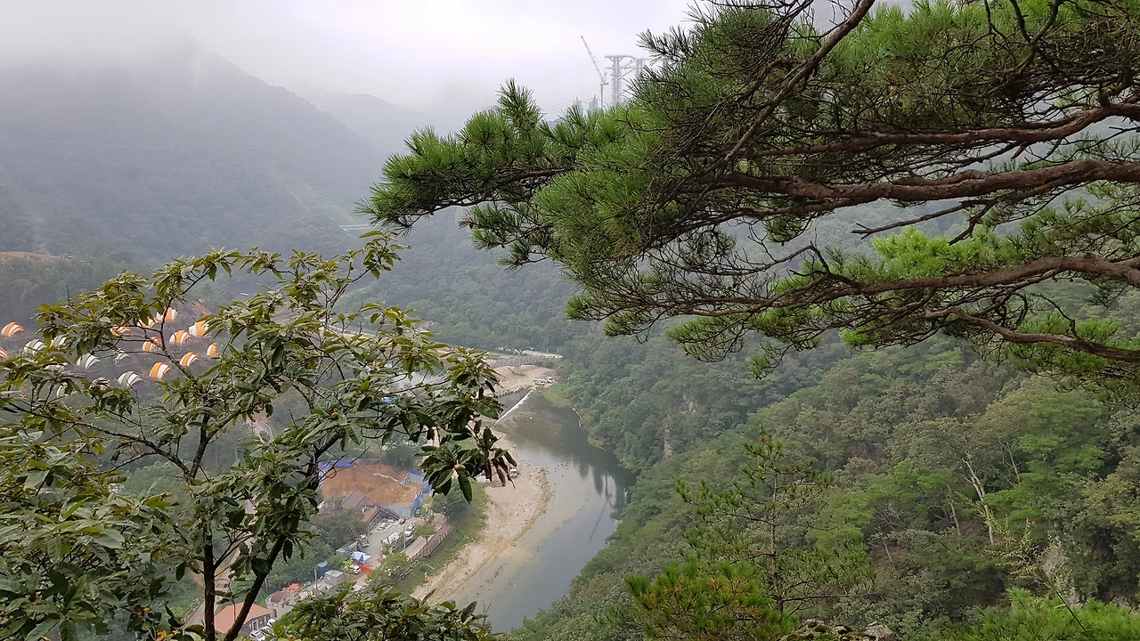 그 풍경을 스치듯 내려오기 너무 아까워 데크에 앉아 배낭 속 간식을 먹으며 우리는 신선놀음에 취해 보았다