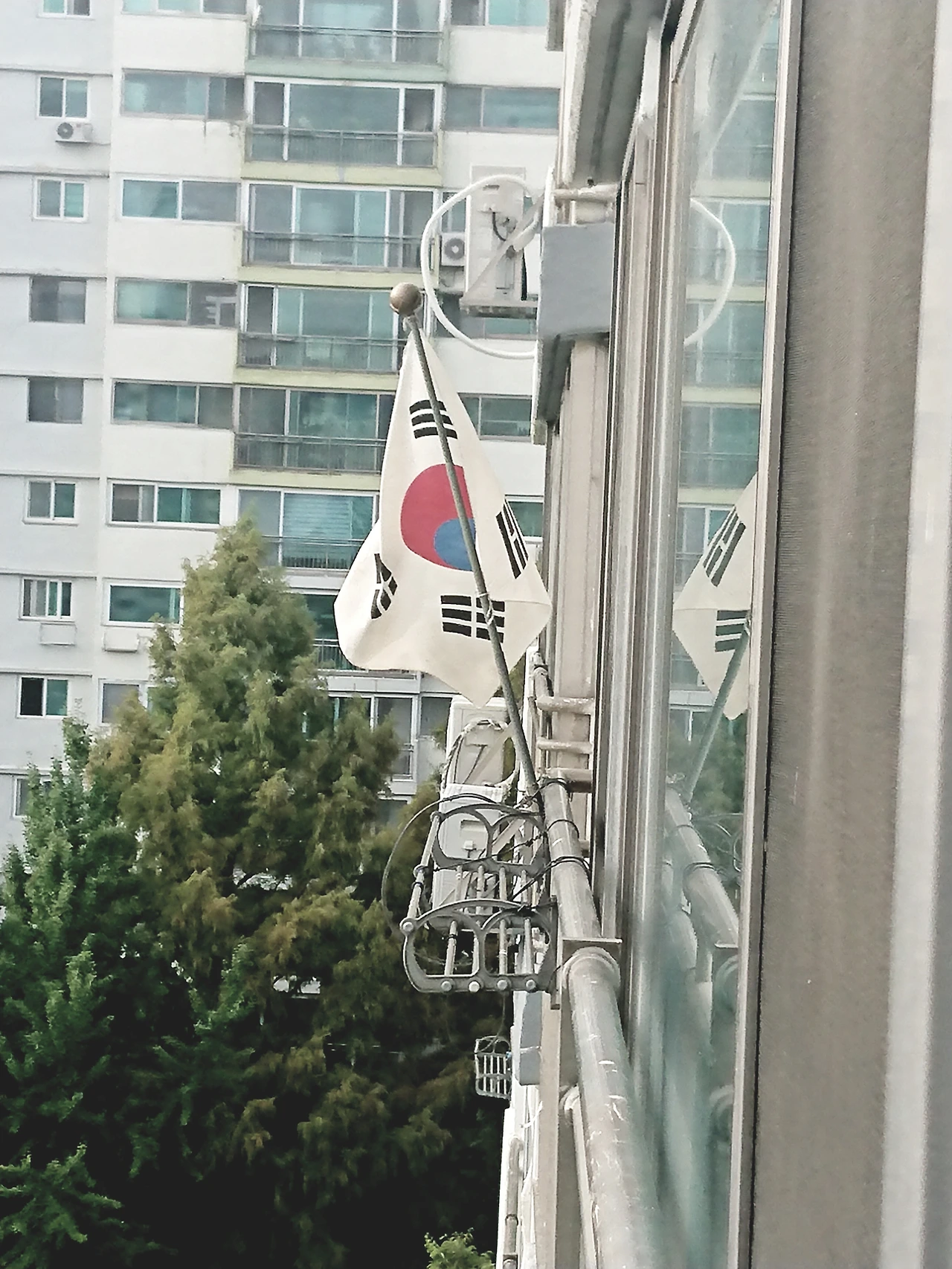 예전에는 발코니에 태극가 많이 걸린 아파트를 자랑 삼기도 했었는데