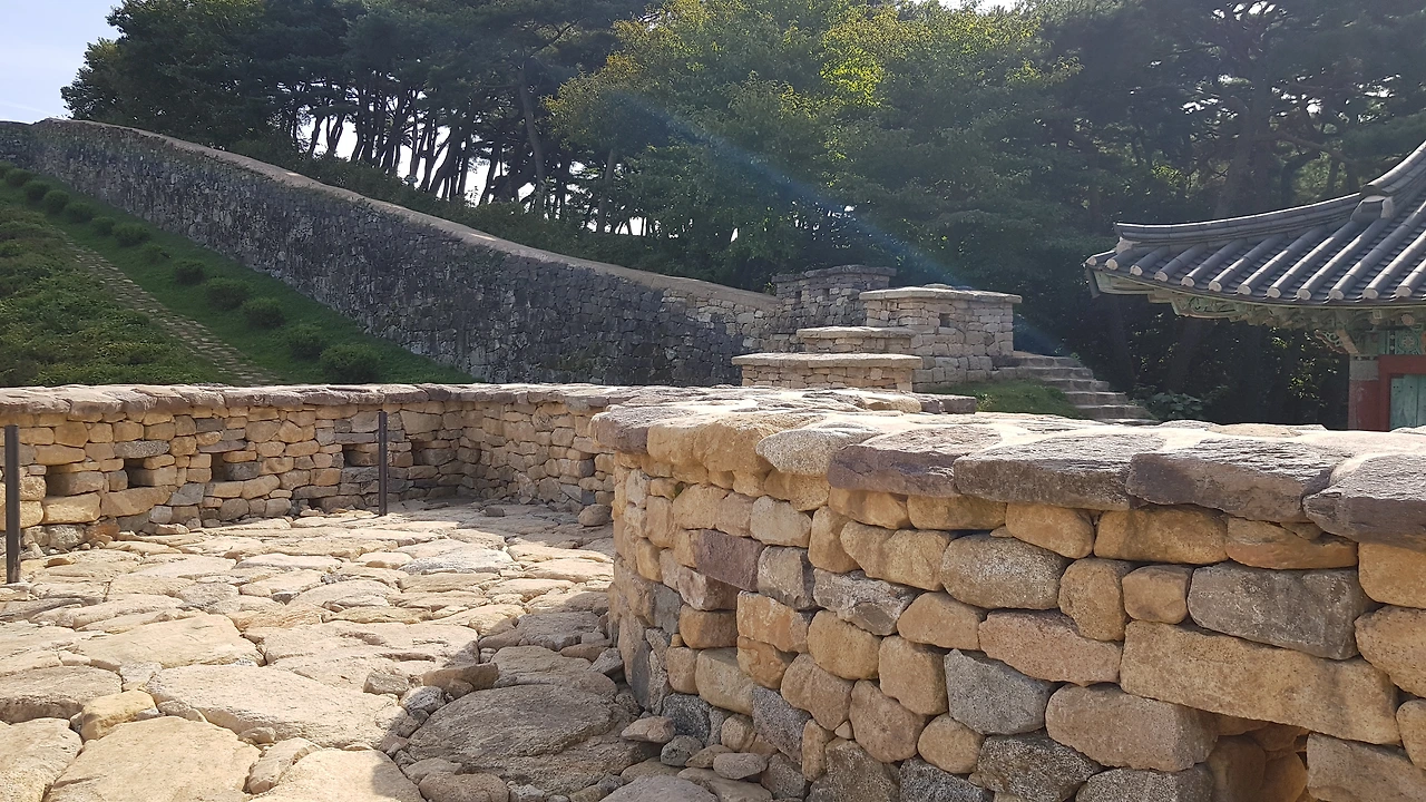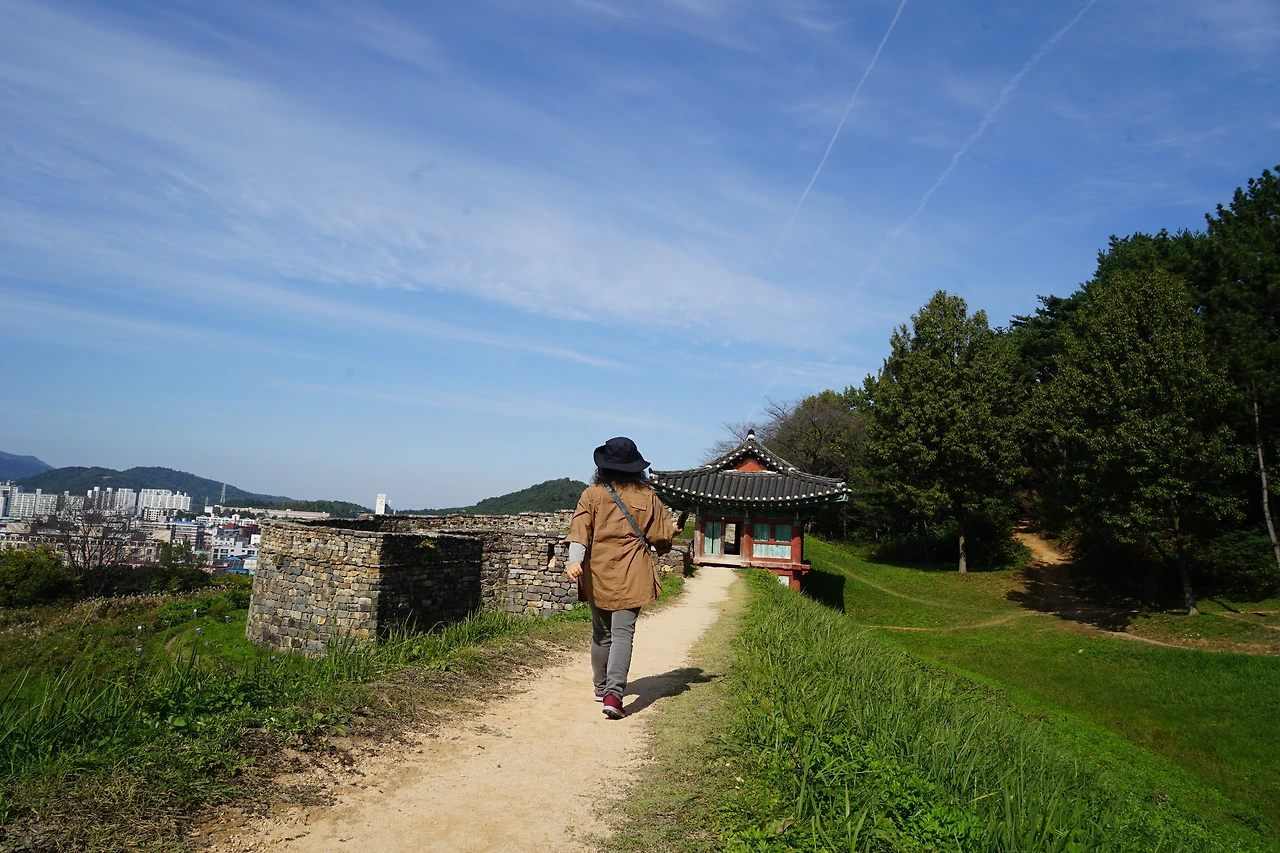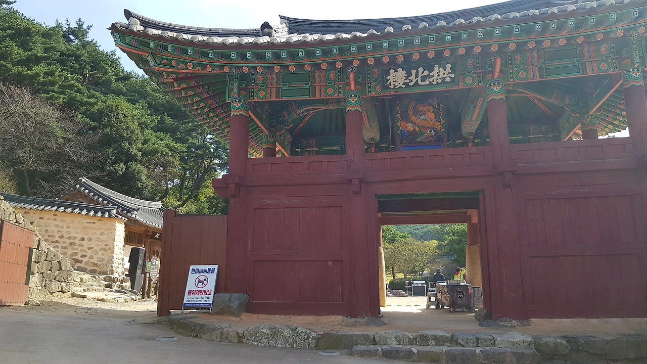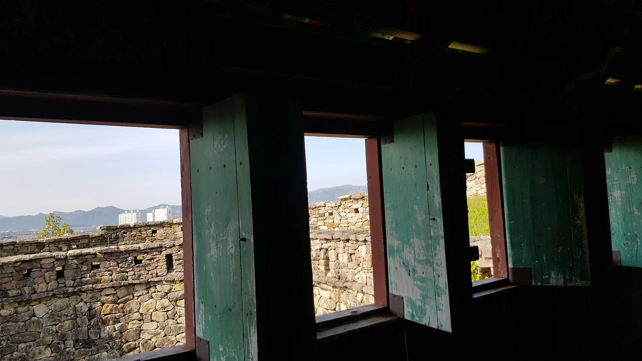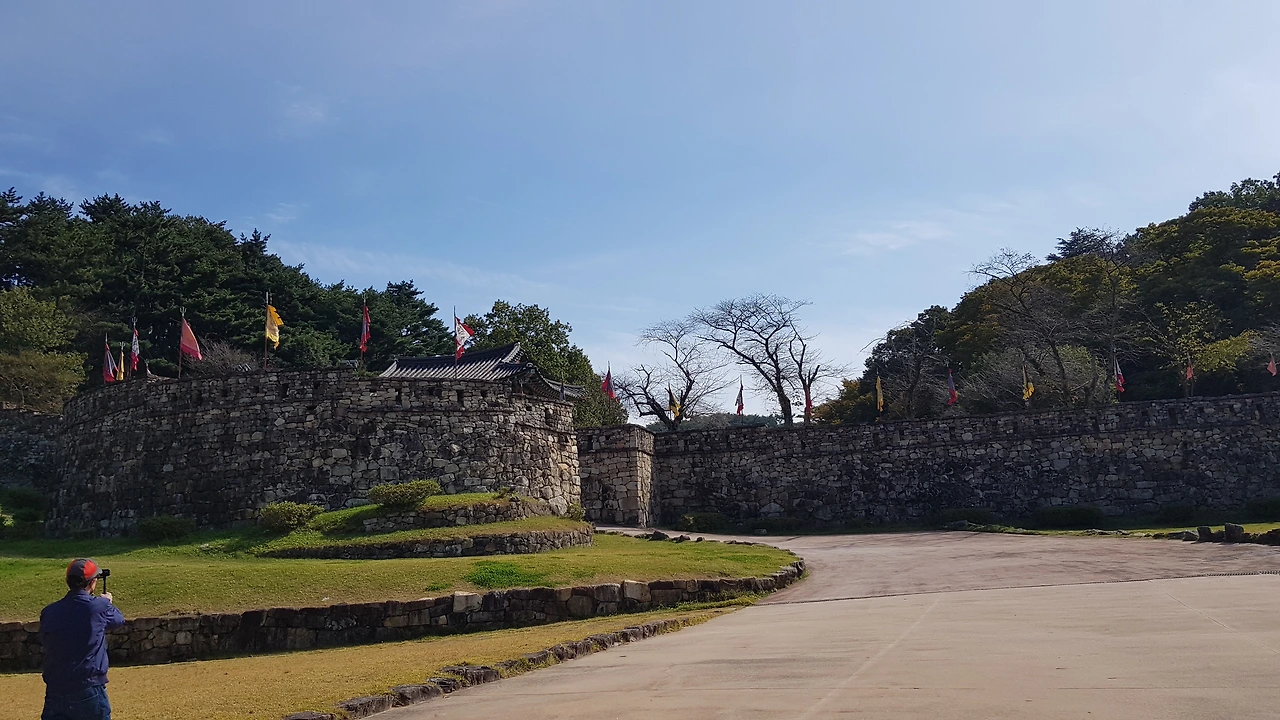 성루로 오르기 위해 용무늬의 화려한 대북을 설치해둔 아름다운 단청의 공북루를지나 성루에 오르기 시작했다