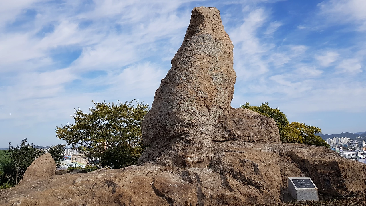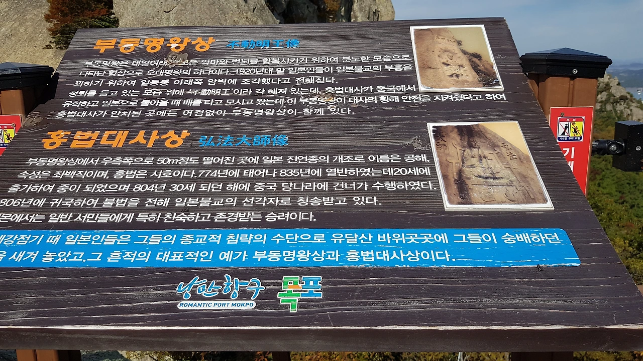 유달산 정상에 올라 엄청난 기암괴석을 바라보니 바위에 부동 명왕이라는 글과 손에 방망이를 든 좀 괴이한 모습의 사람? 이 서있었다