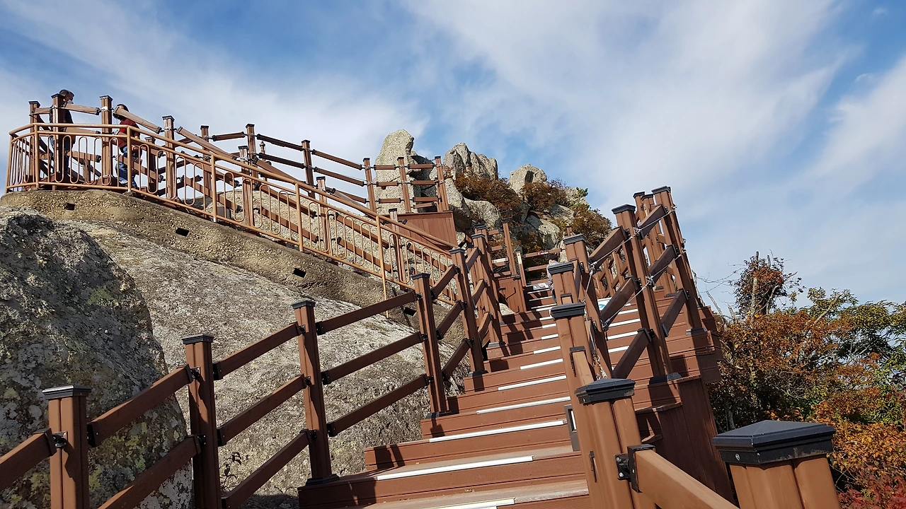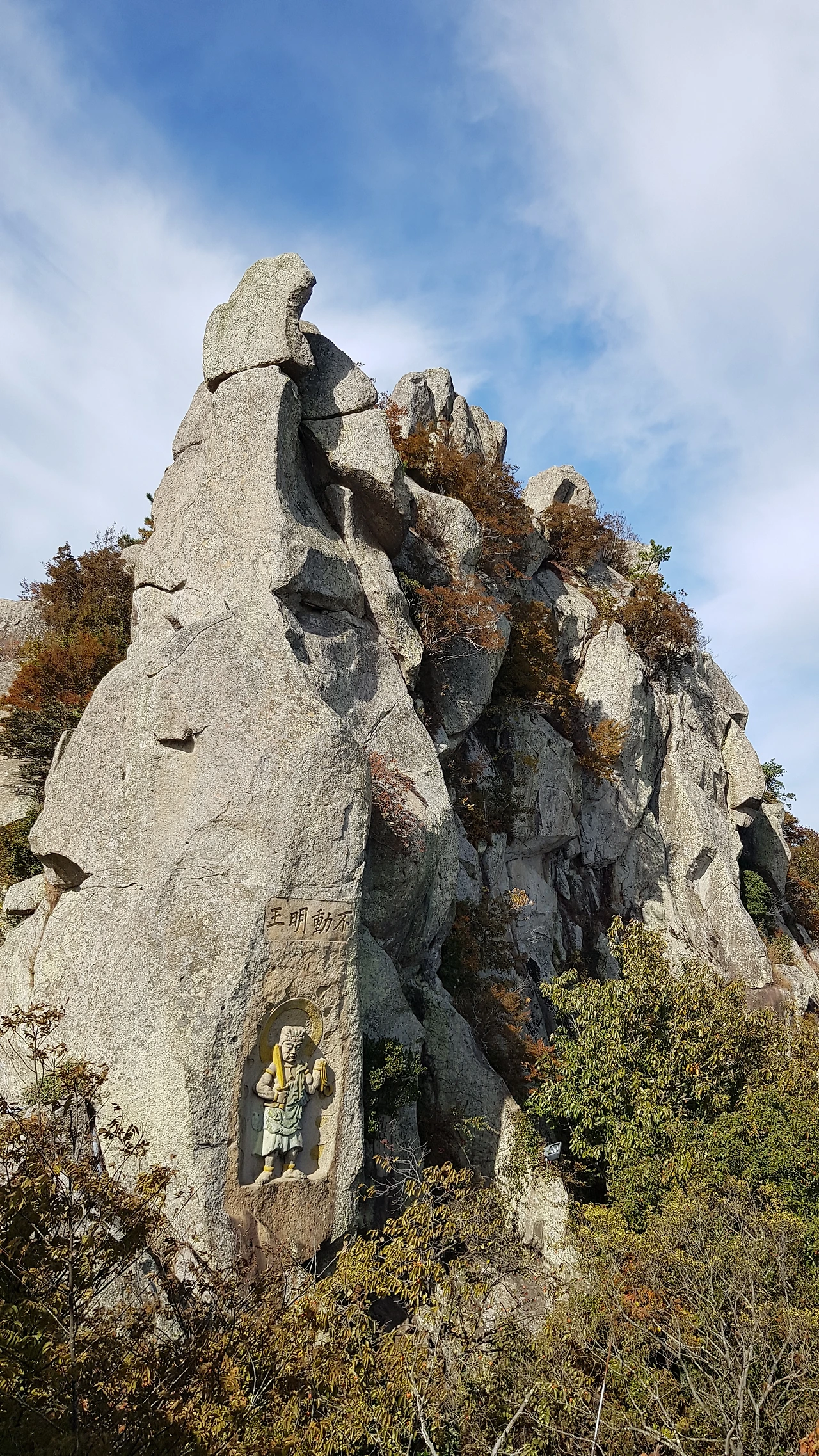정상의 전망대 안내판에 의하면 일제강점기 자신들의 사상을 심기 위해 유명한 산 여기저기에 이러한 상을 새겼다는 사실에 갑자기 기분이 무척 상해서 할 수만 있다면 날아가 정으로 다 쪼아내라고 싶었다