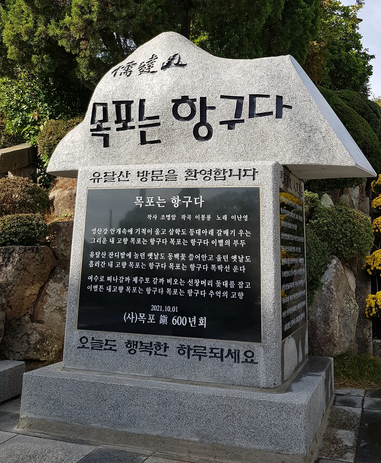 유달산 표지석을 지나 계단을 오르니 목포는 항구 다는 이난영 노래비와 맞은편에 유달산 정기의 돌비가 아마도 유달산에 오르면 유달산 정기를 듬뿍 받을 것 같다