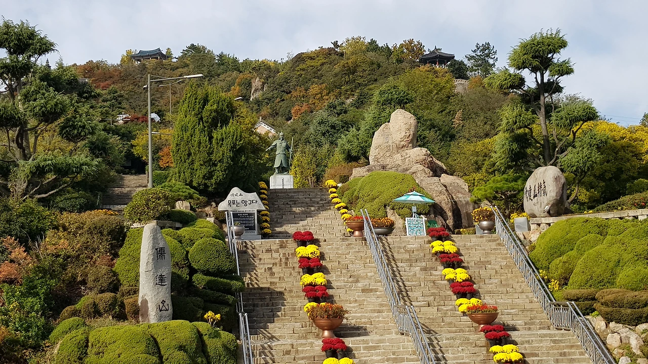 노적봉 뒤쪽에 노적봉공원도 있었는데 그곳에는 시민의 종각이 있었고 잘 가꾸어진 나무들이 반겨주었다