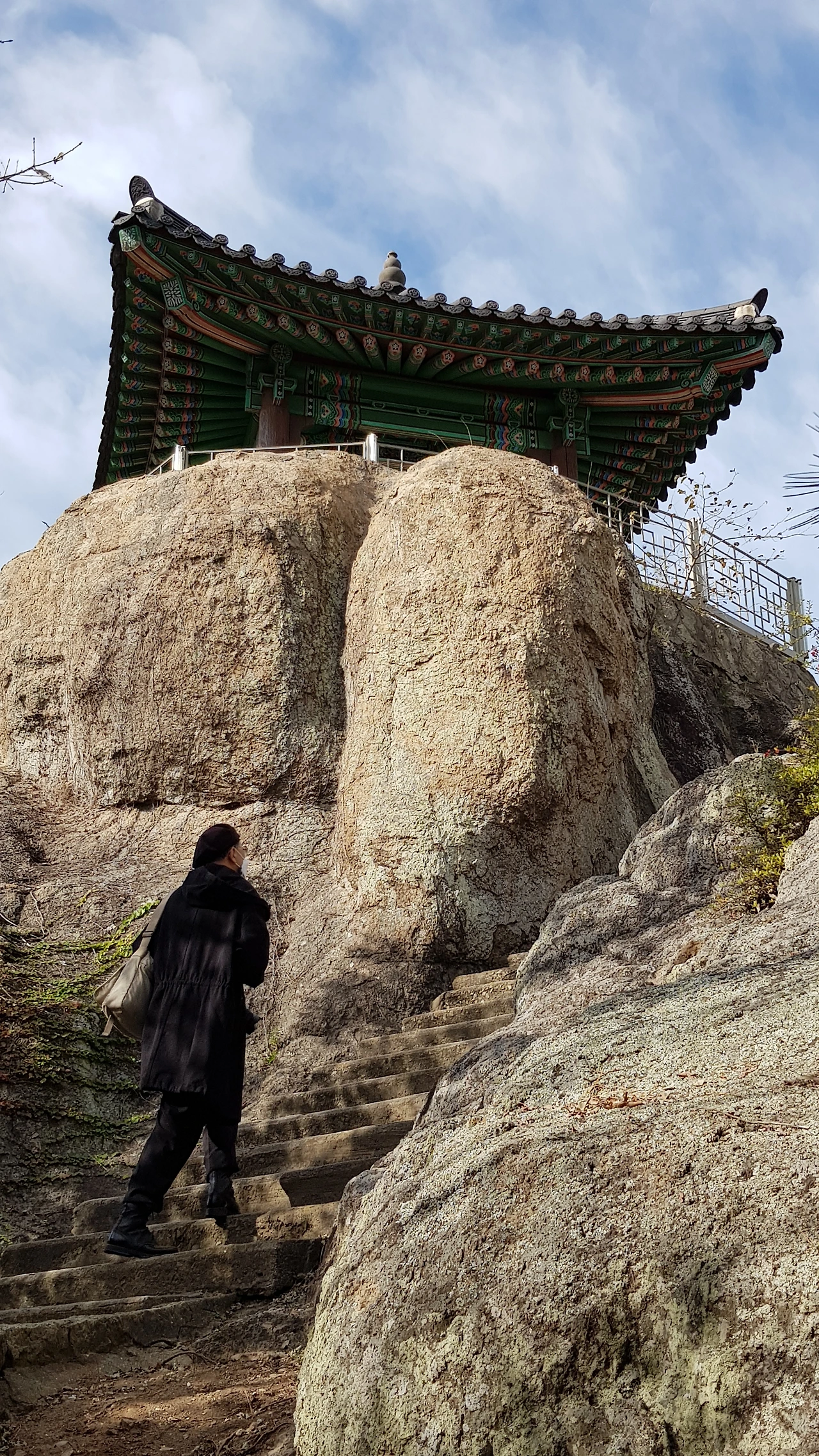 엄청난 높이의 커다란 바위 노적봉의 위엄이 대단하고 한 바퀴 돌아보면 보는 위치에 따라 엄청난 차이를 느끼게 된다