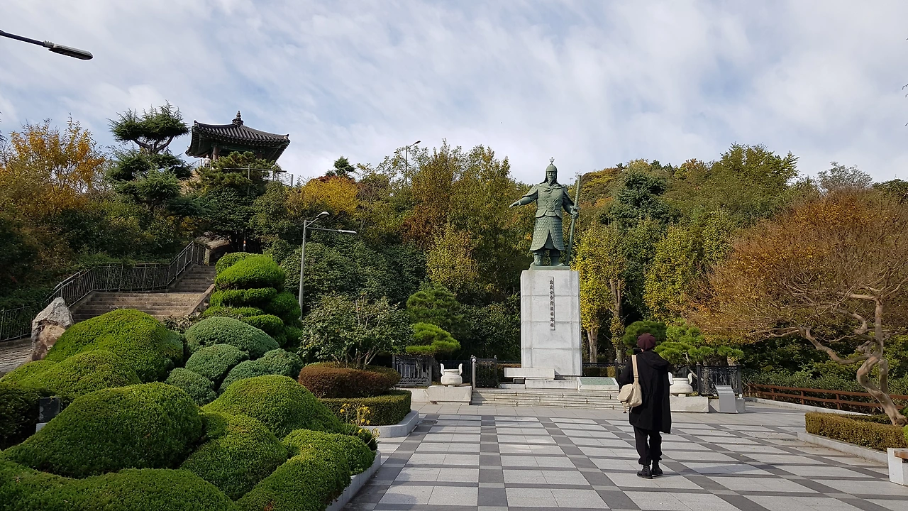 그 곁에 서 있는 복바위를 지나 좀 더 들어가자 이순신 장군 동상이 위엄 있게 서 있었는데 왼손에 칼을 쥐고 계신 모습에 마음이 편안했다