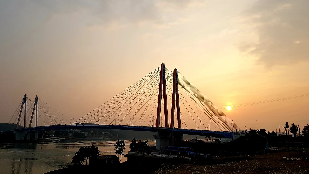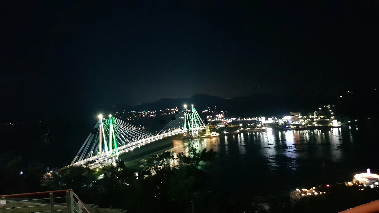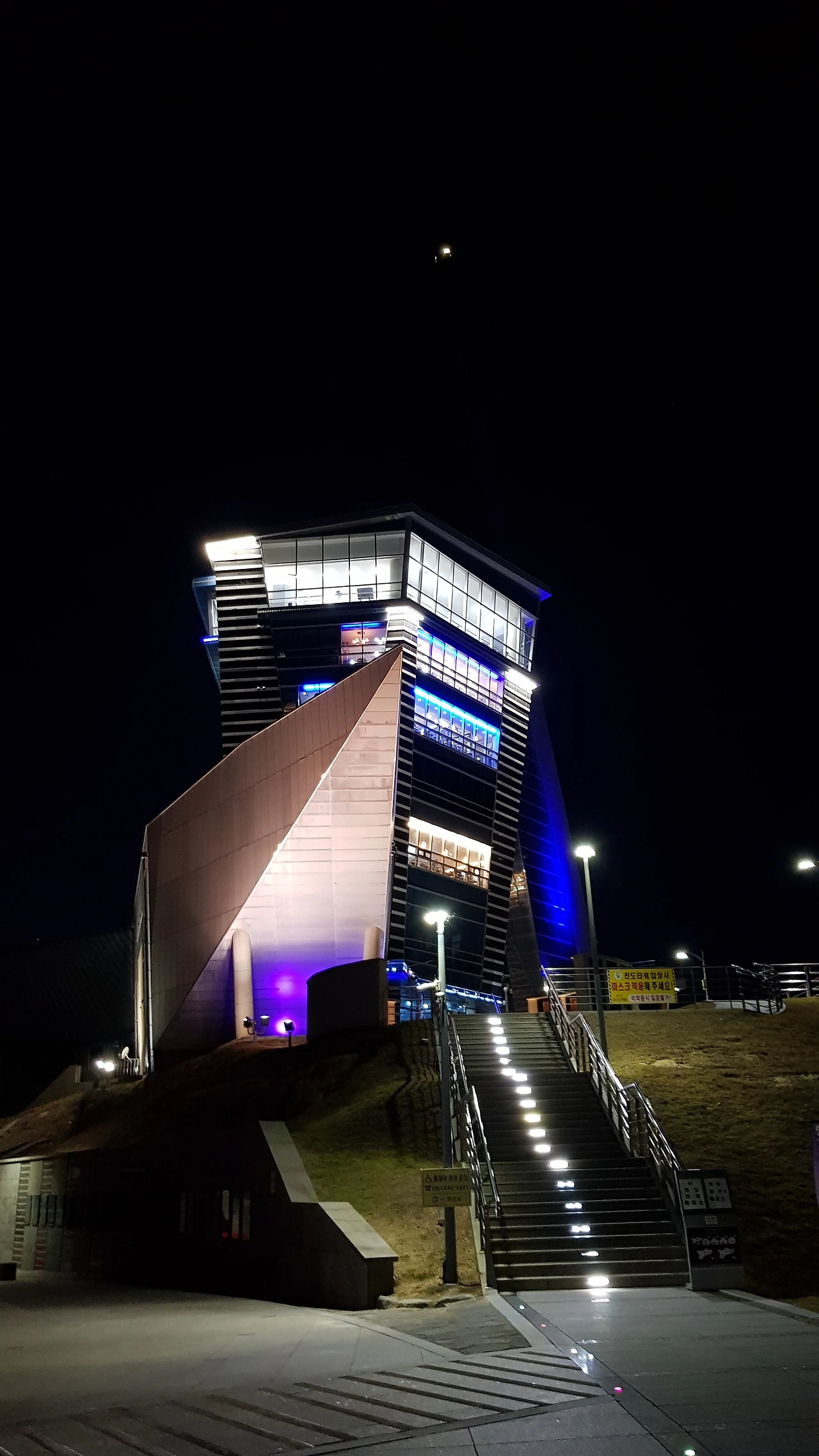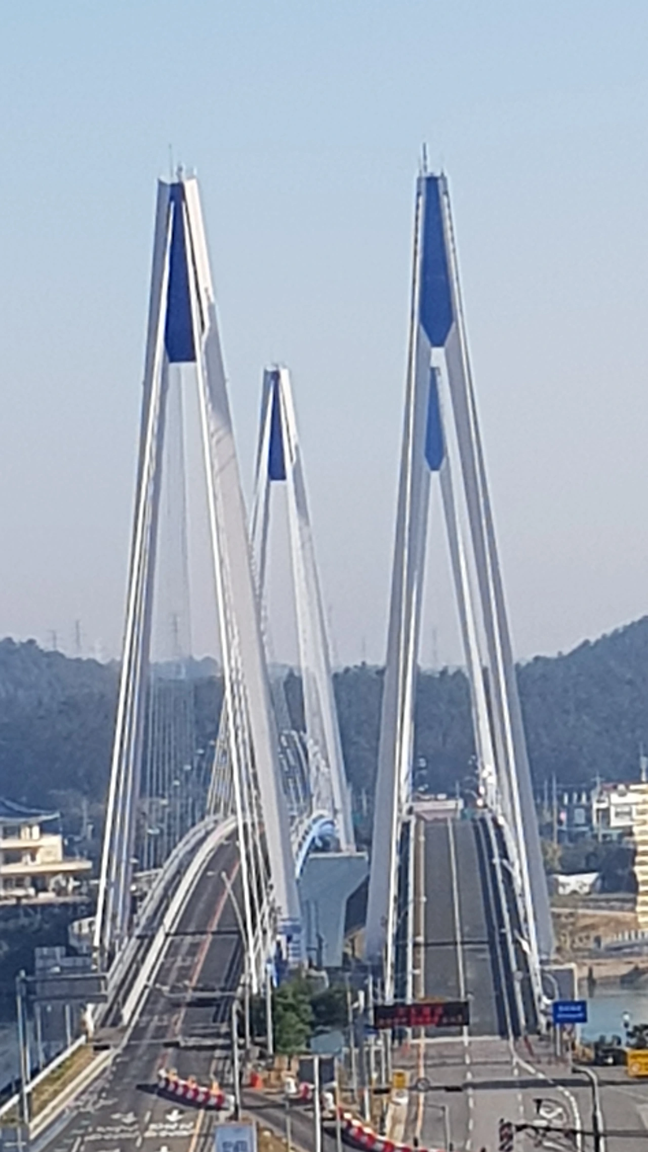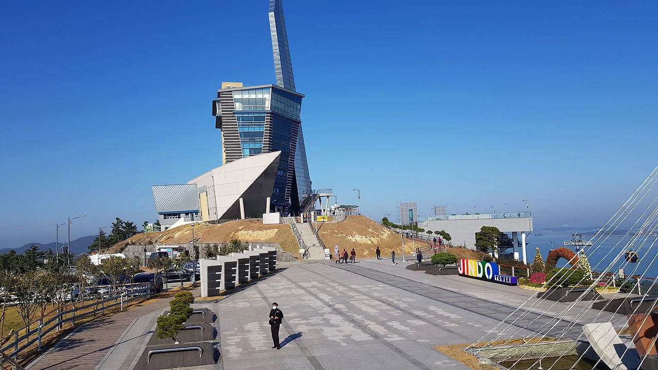 오후 6시쯤 되자 진도 타워와 진도대교가 아름다운 색의 드레스를 바꿔 입으며 노래하고 춤을 추는 것 같다