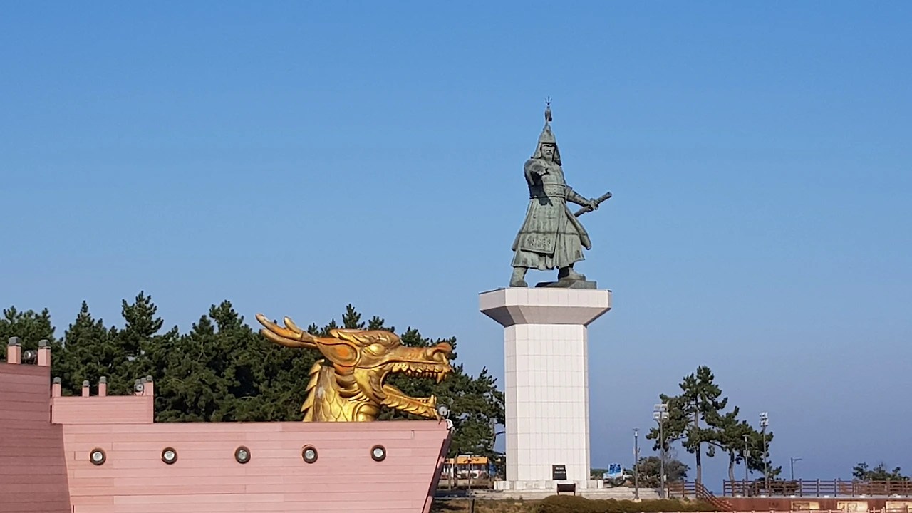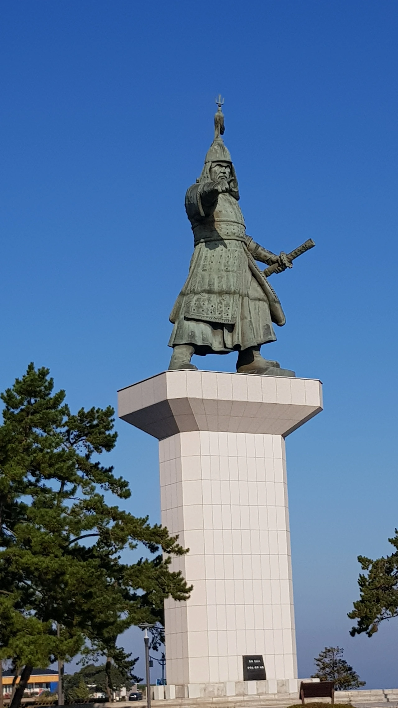 이순신 장군의 동상이 위용을 자랑했는데 지금까지 본 동상중 가장 위엄이 있어 보였다