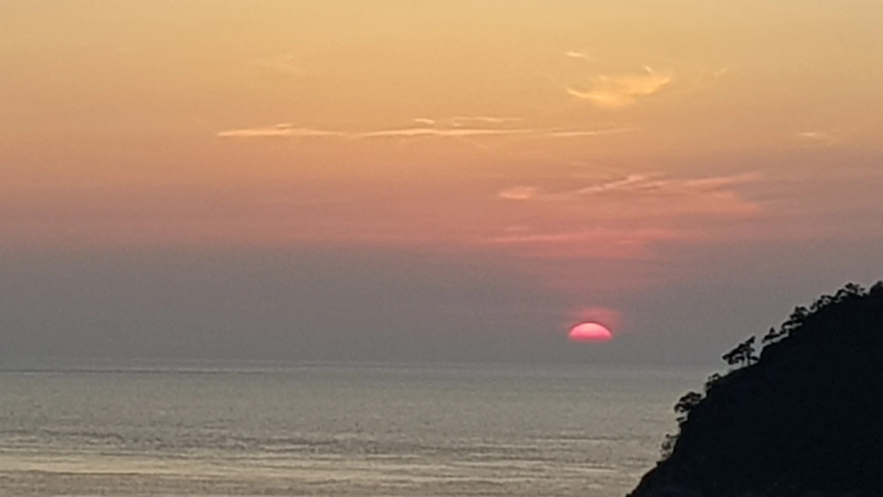 하지만 하늘에서 바다로 떨어지는 낙조는 그 서정이 가슴을 저리게 한다