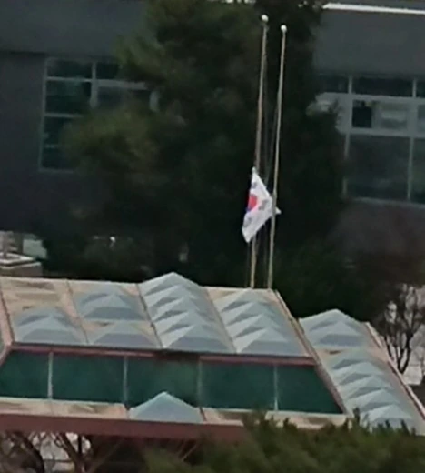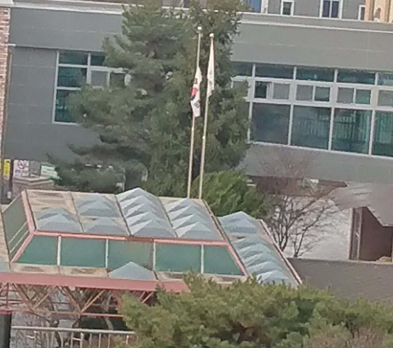 학교는 너덜거리는 늘어진 조기가 게양되어 그냥 두어서는 안 되겠기에 전화를 했다
