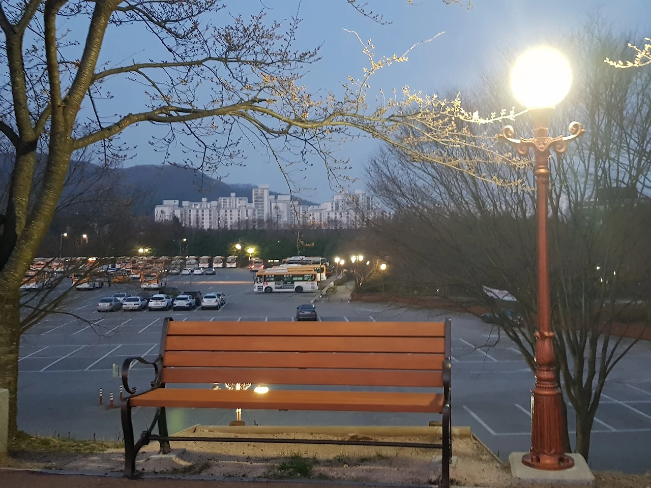 새벽 호수 뚝길 외롭던 긴 의자