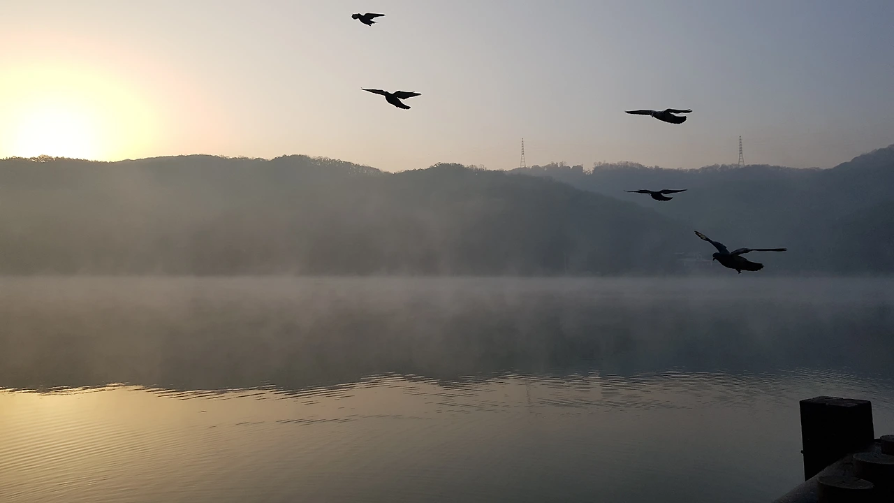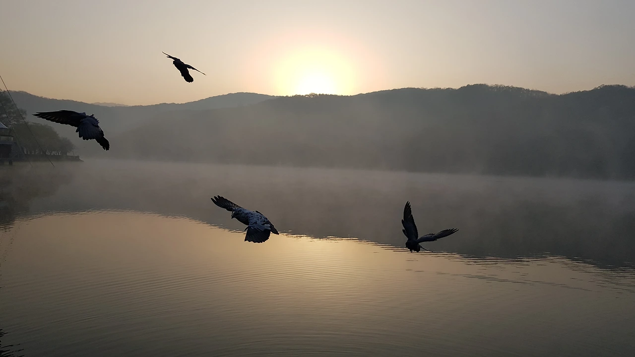 검은 새들 눈앞에 나타나 힘찬 날갯짓