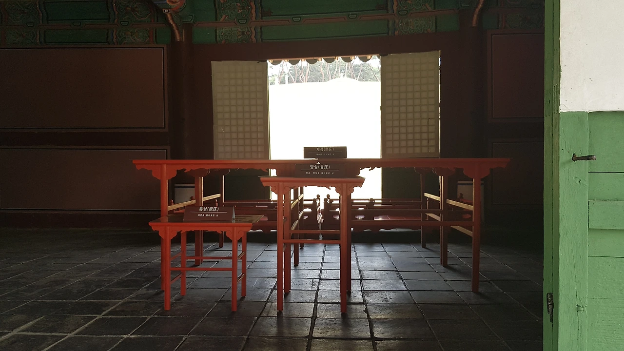 능 바로 앞에는 제를 올리는 재실이 있고 안에는 제사 올리는 상이 있으며 묘를 마주 보는 문이 나 있었다