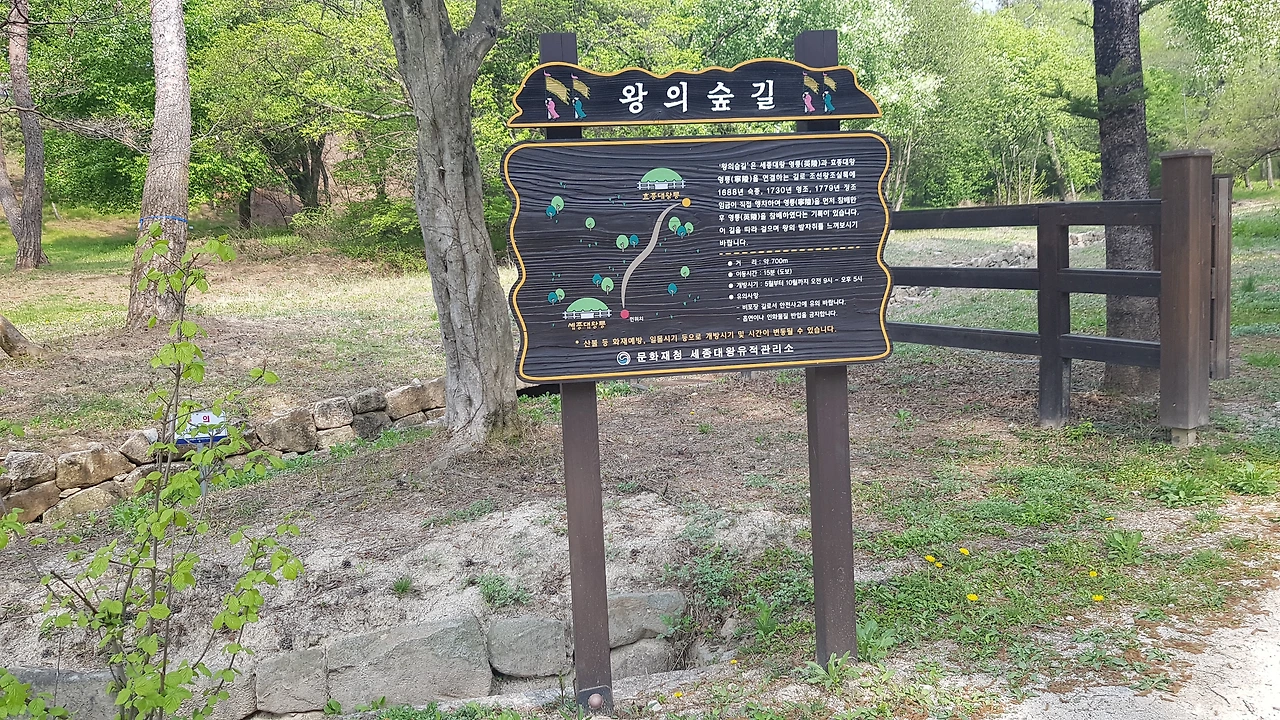 조선왕조실록에 기록되기를 숙종, 영조, 정조 임금께서 이곳에 오시어 효종대왕릉을 먼저 참배하시고 이 길을 지나 세종대왕릉에 참배를 하시었다는 기록에서 이 길 이름의 왕의 숲길이라 한다는 것