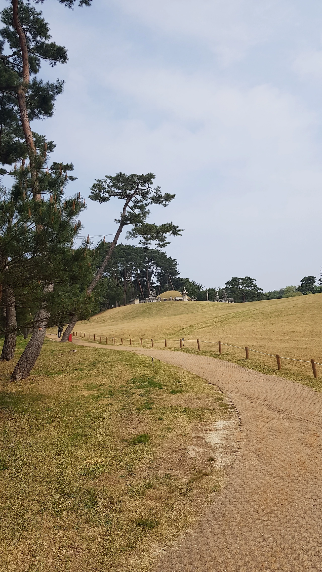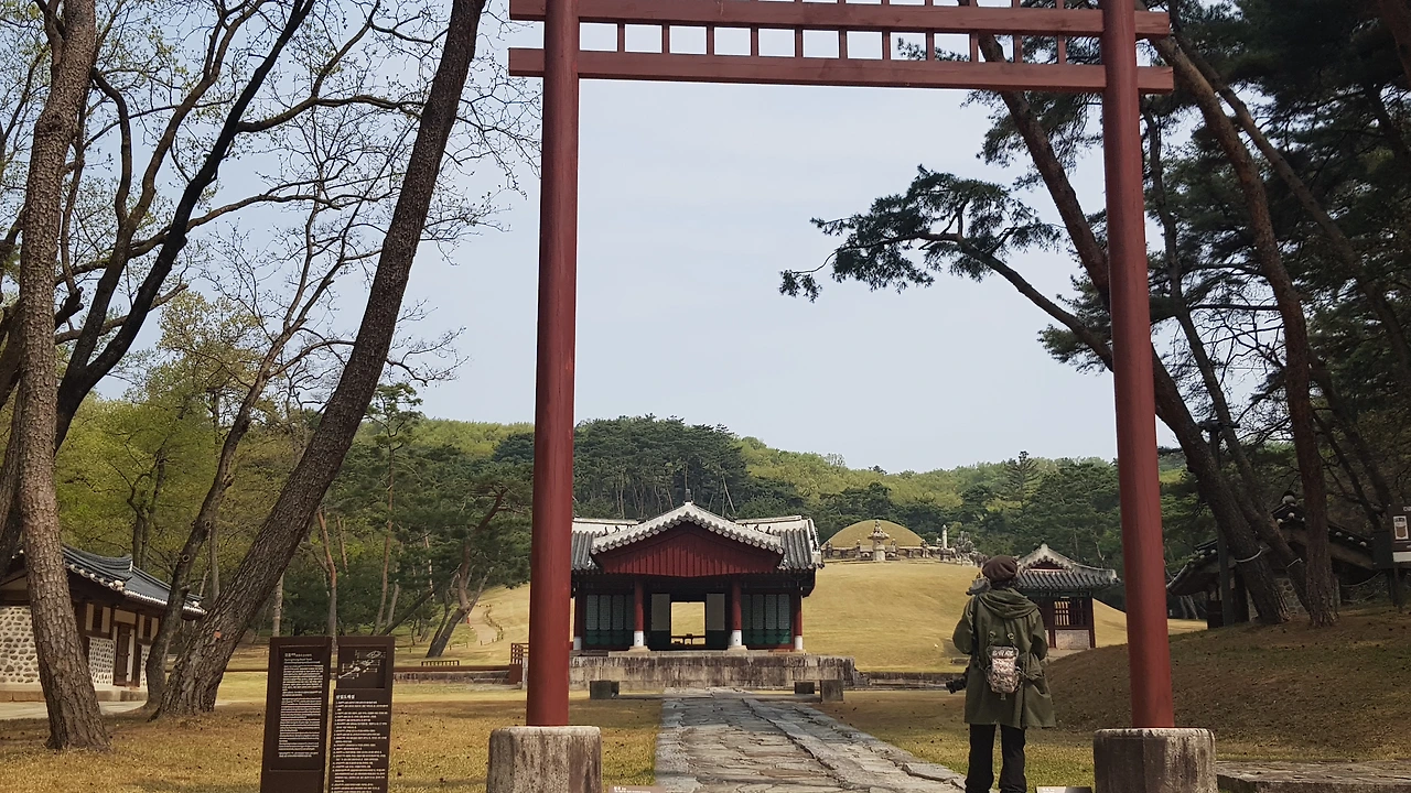 산 위에 있는 커다란 두기의 릉은 옆으로 바라볼 수밖에 없어 다시 밑으로 내려와 잘 바라보이는 위치에 서서 볼 수가 있었는데 릉을 바라보며 잠시 효종의 입장이 되어 보았다