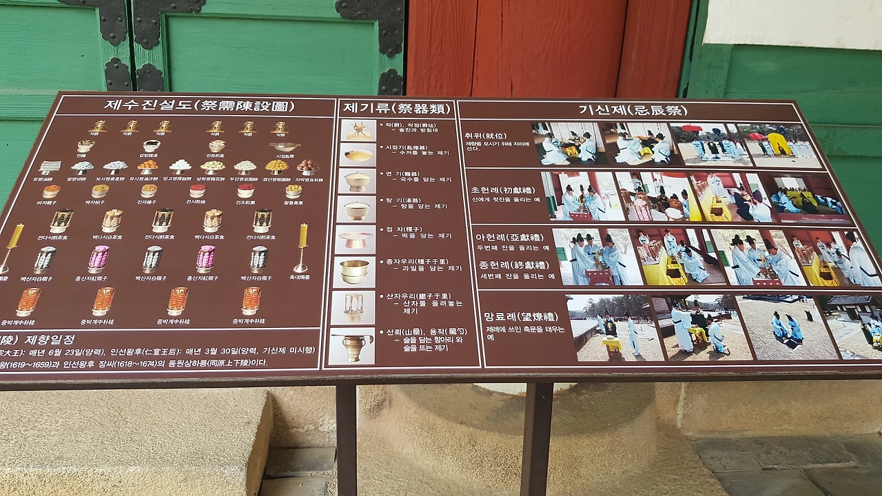 홍살문을 지나 재실에 도착하여 제사를 위한 준비상황을 비치한 안내도를 보며 제사의 예를 생각해 본다