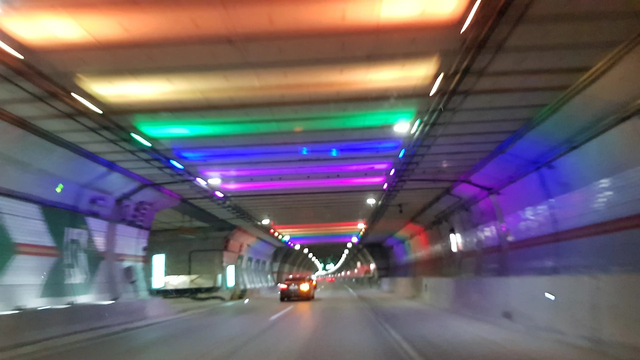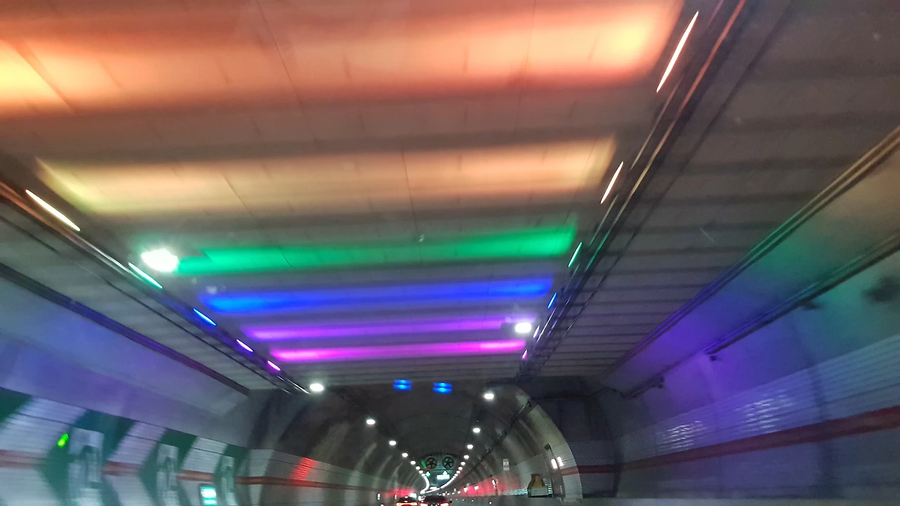 터널 안에 색색의 아름다운 빛의 공연을 쏟아 내고 있었다
