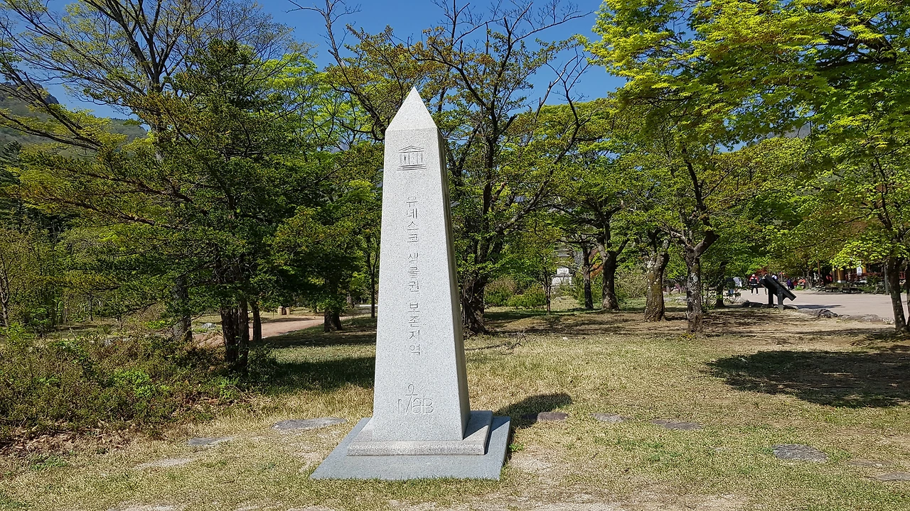 잘 가꾸어진 넓은 공원은 유네스코 생물권 보호지 역임을 알리는 탑이 있어 이 터가 세계적으로 중요한 지역임을 느껴본다