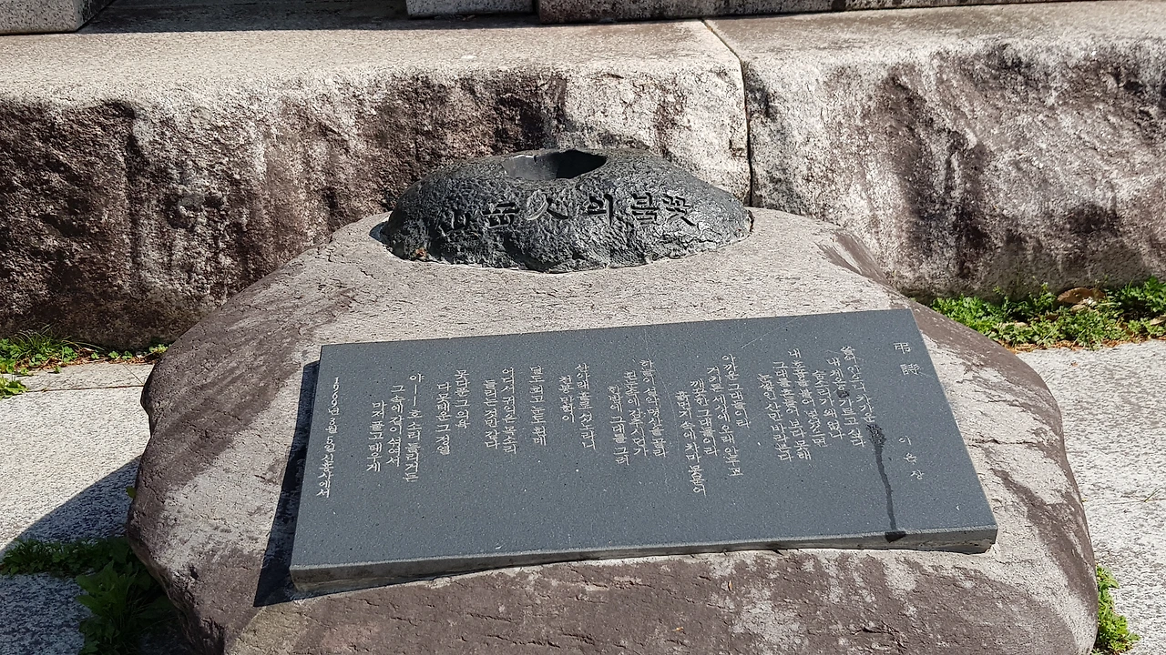 한 곳에 조금은 낯선 모형이 있어 가까이 가보니 산악인의 불꽃이라는 영령 비였고 쓰인 글귀를 보니 설악에 숨을 맡기고 간 영령들을 기리는 것 같다