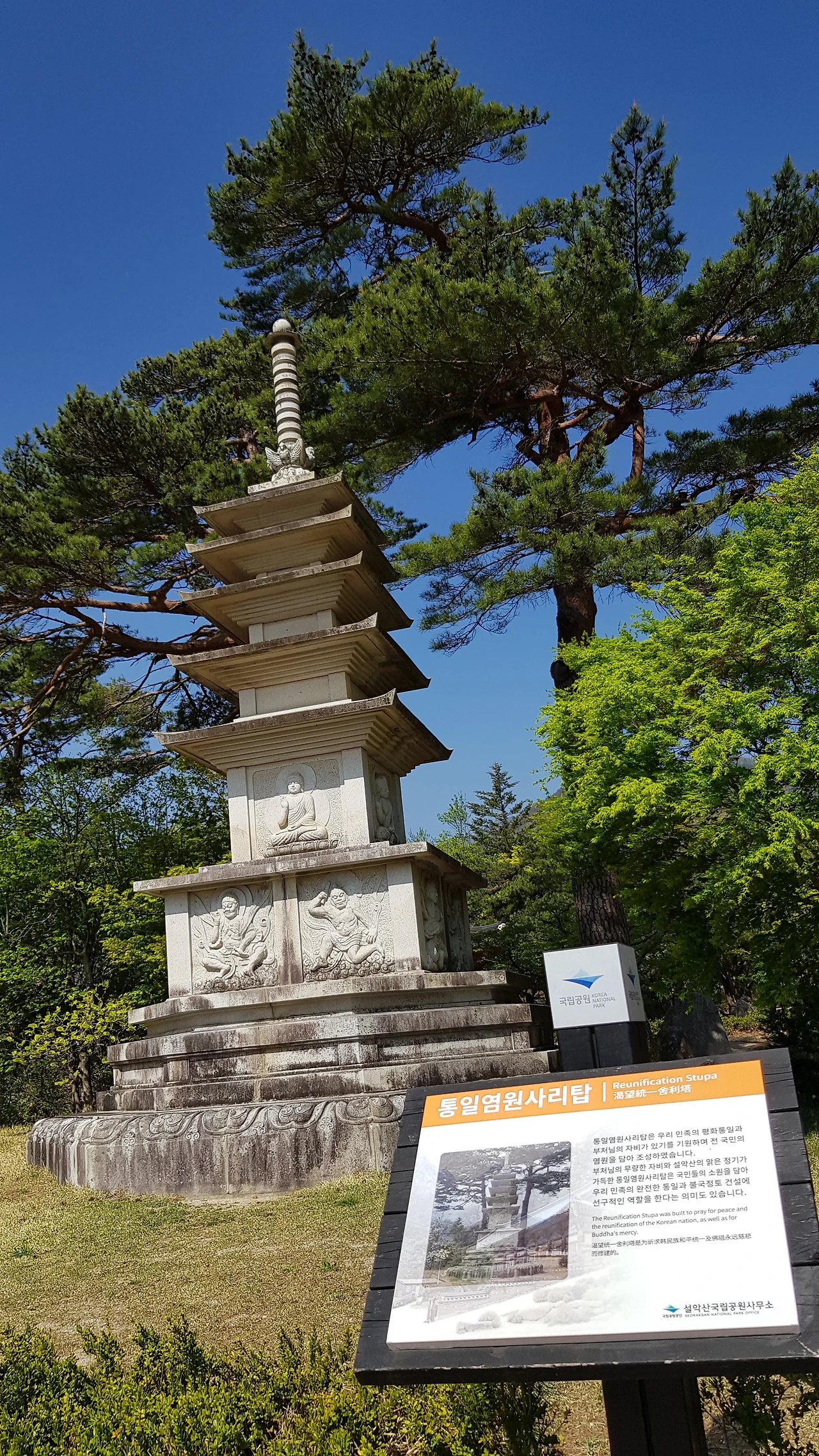 돌다 보니 설악지구 전적비와 멋들어진 금강 소나무, 통일 염원 사리탑 등 여러 기념비적인 것들이 여럿 있었다