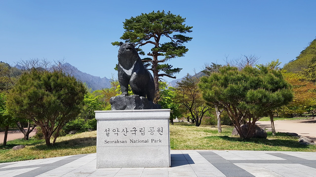 설악 일주문을 통해 입장을 하니 커다란 곰돌이가 설악산 국립공원에 어서 오라며 반가운 인사를 전한다