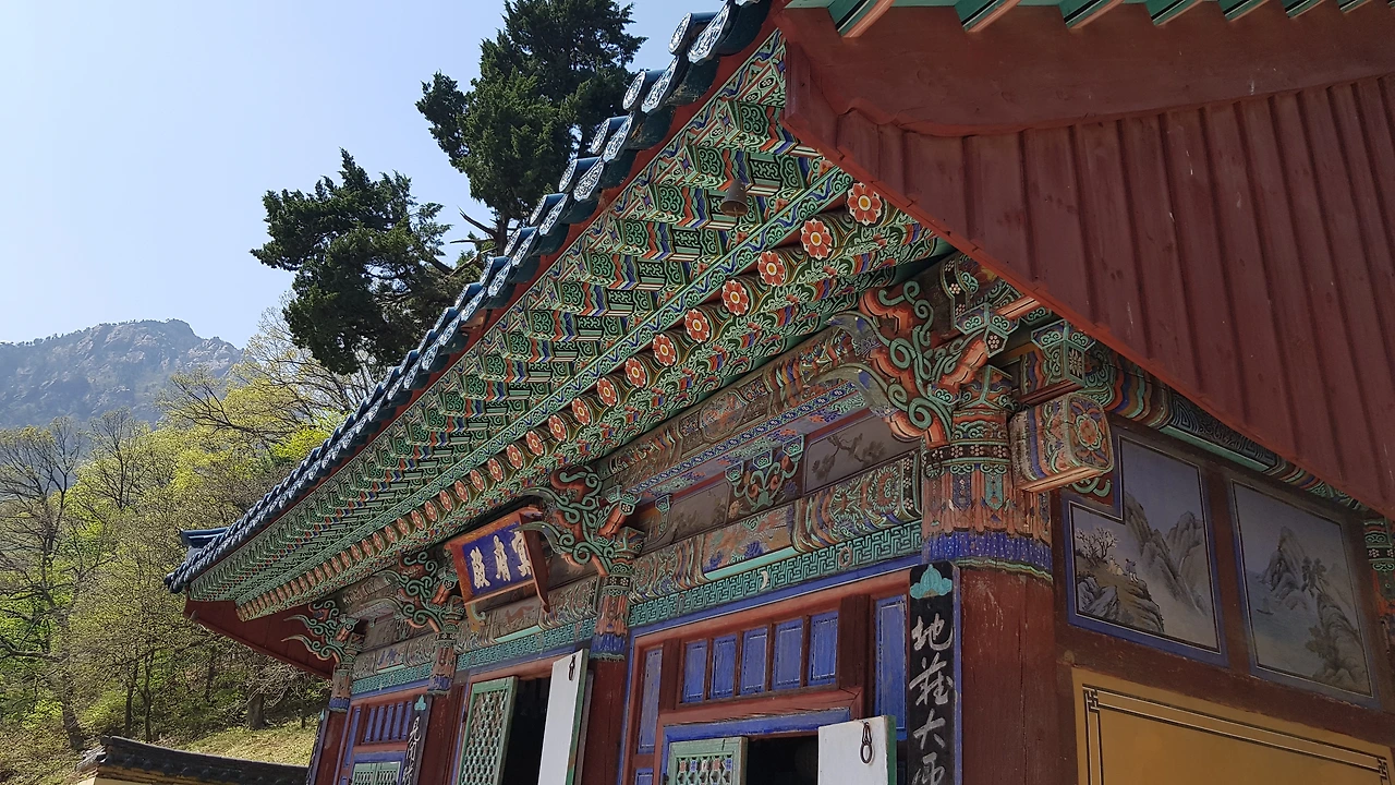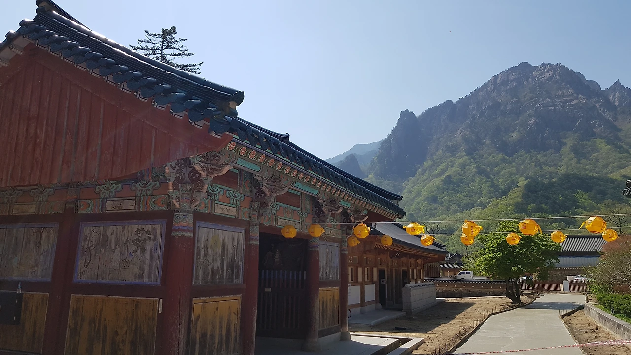 추녀의 아름다운 단청과 이어지는 설악산의 정경을 바라보며 감탄하지 않을 수 없었다