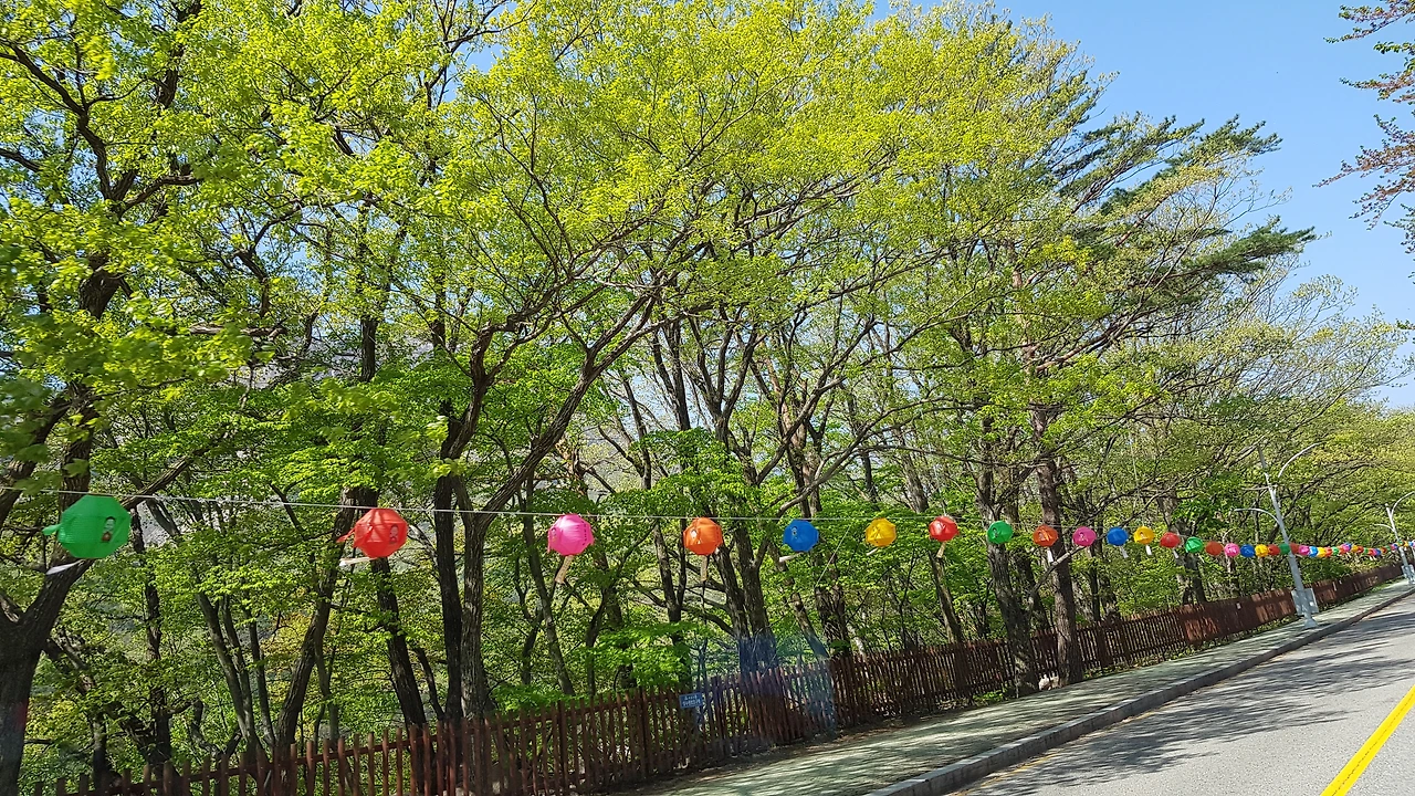 싱그러운 봄빛에 연등행렬은 부처님 오신 날이 도래한다는 소식을 알리는 길을 따라 신흥사에 도착했다