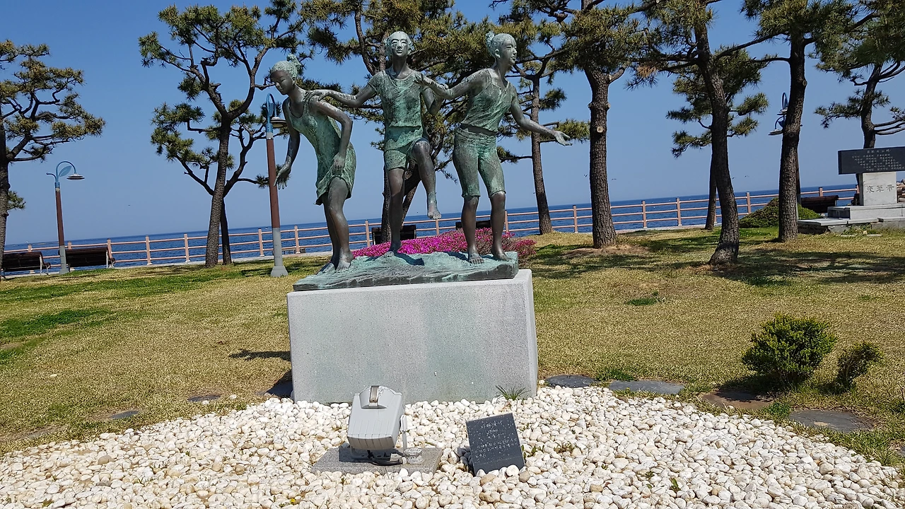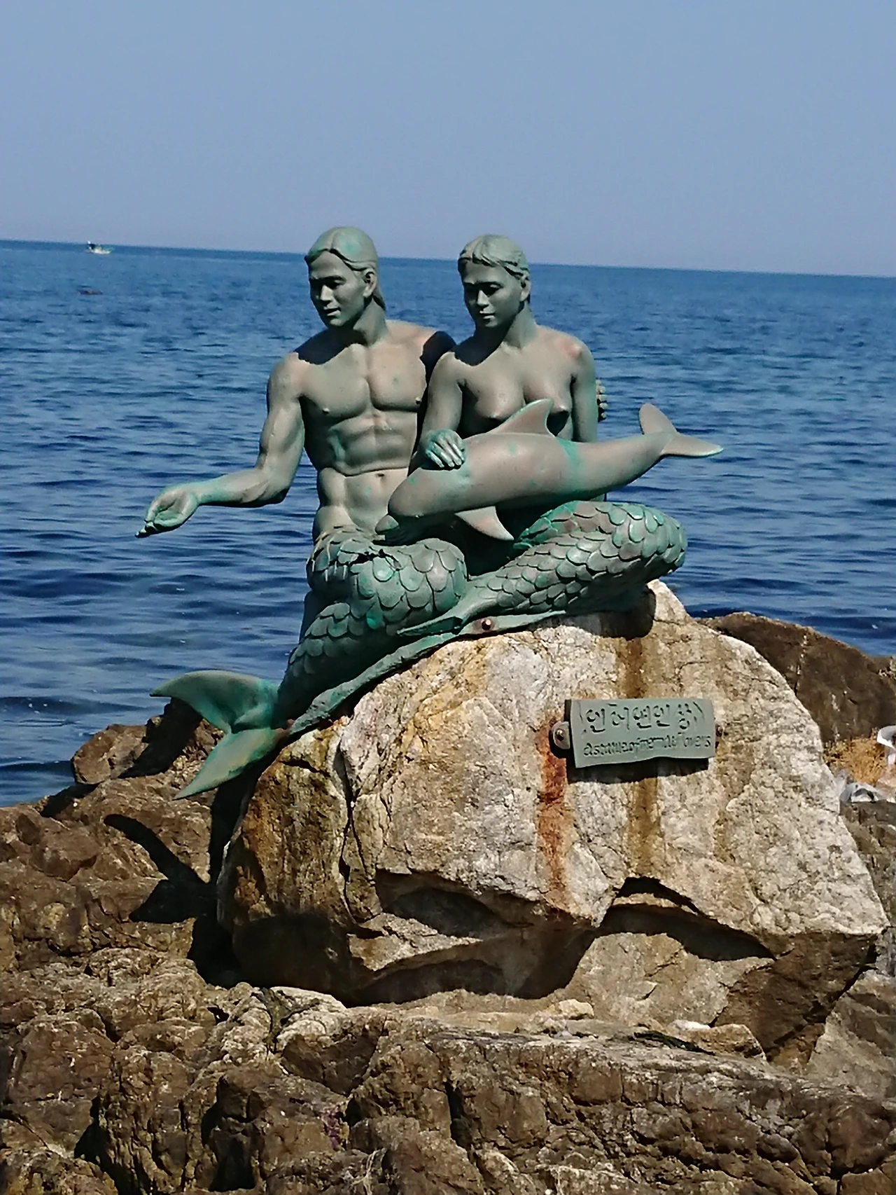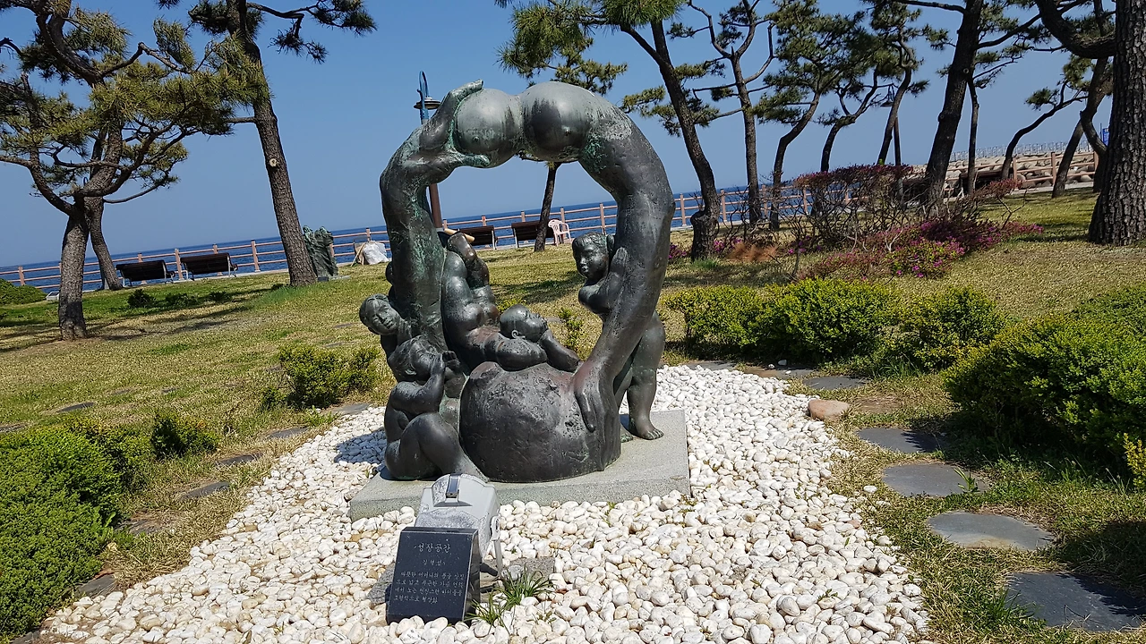 이 공원은 바닷가에 조각 공원으로 조성하고 있었고 눈길을 끈 인어 연인상 안내판을 따라 가보니 남녀 인어가 바닷가 바위 위에 앉아 부서지는 파도를 내려다보고 있는 듯하다