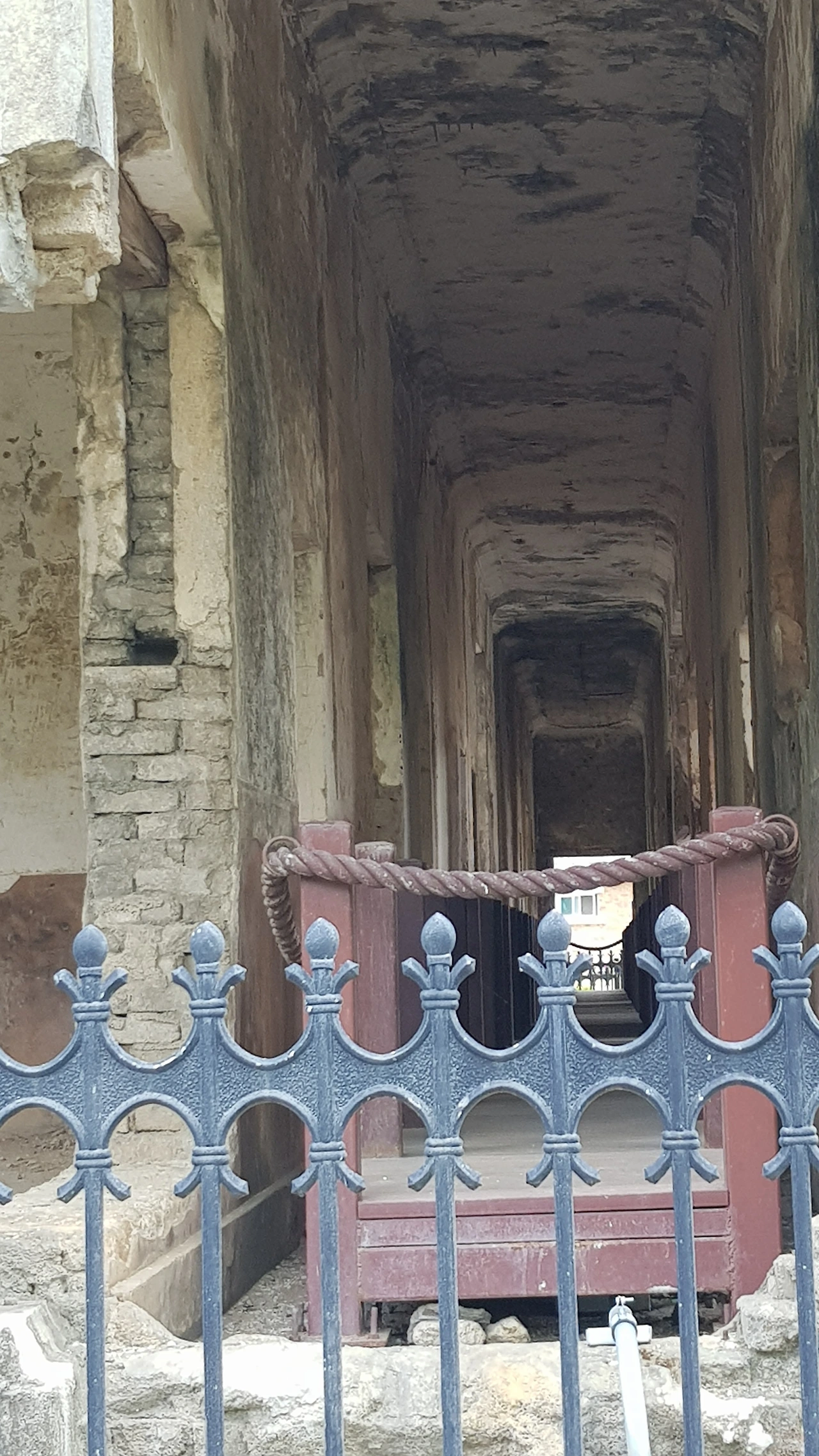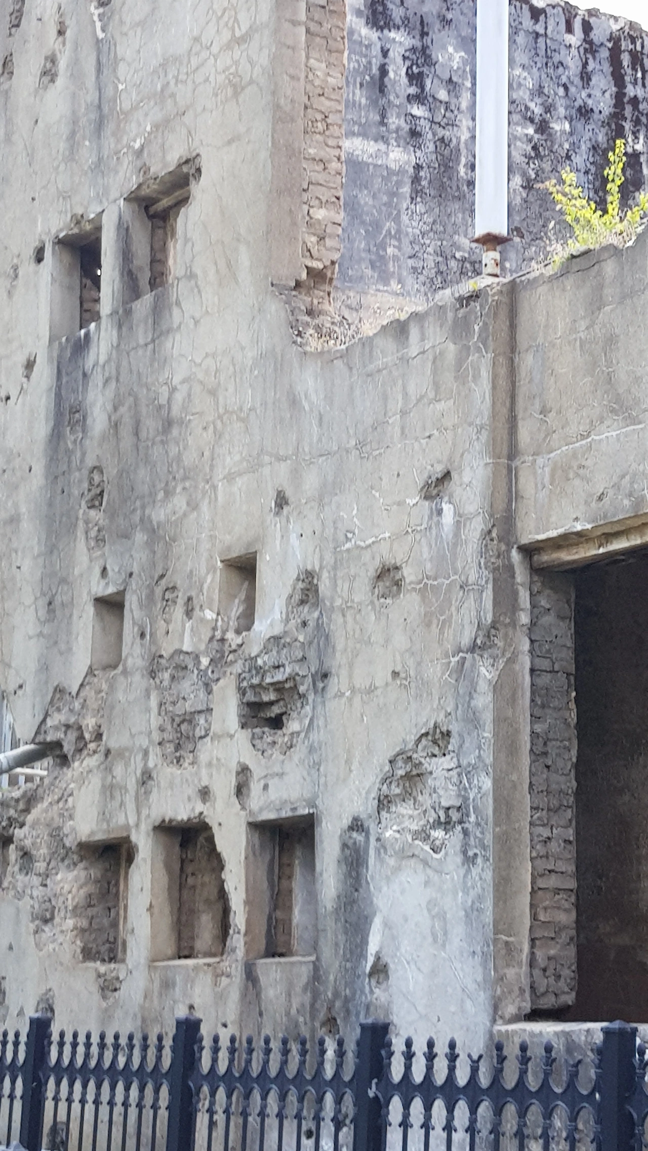 건물은 벽돌로 두텁고 튼튼하게 지어져 있었지만 뒤쪽은 더 형편없이 무너져 내려 있어 포탄의 위력을 실감케 했다