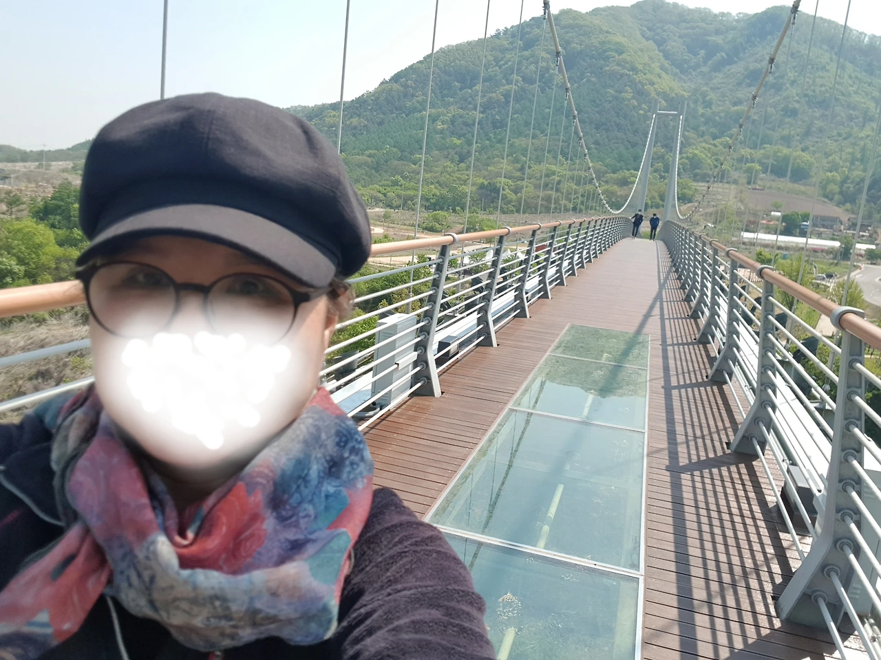 다리 앞에 서자 우람한 다리 가운데에는 유리로 된 부분이 눈에 들어와 겁을 주고 있다