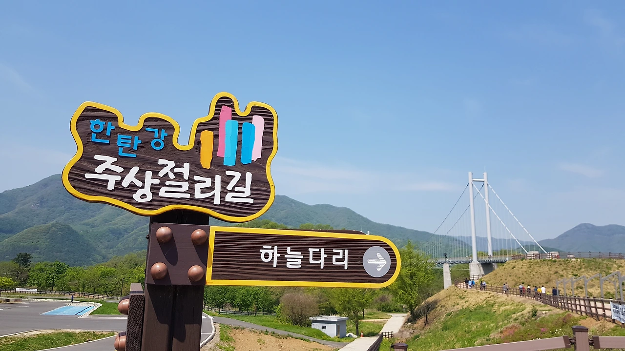 길게 줄지어 달리는 산속을 흐르는 푸른 물이 굽이치는 한탄강, 강가를 따라 펼쳐진 주상절리의 모습, 비둘기폭포 주차장의 모습등은 다리에 오르지 않았으면 눈에 담을 수 없을 것 같은 풍경이었다