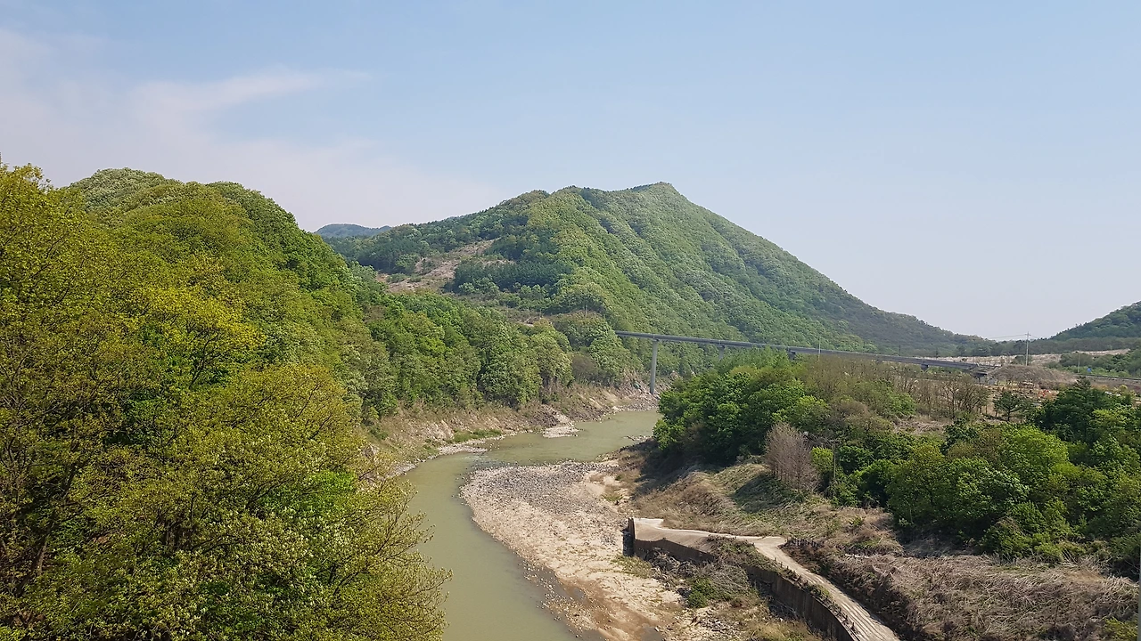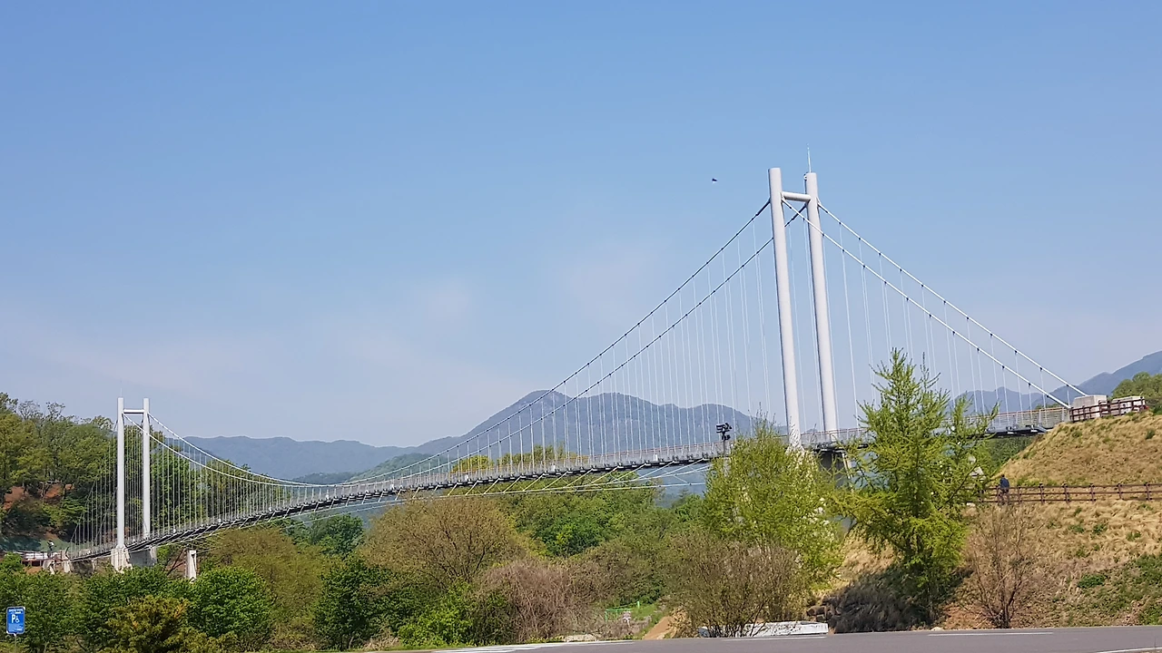 주차장에서 올려다본 다리는 푸른 하늘과 저 멀리 길게 드러누운 산줄기와 나무들의 조화로 그 풍경이 정말 아름다웠다