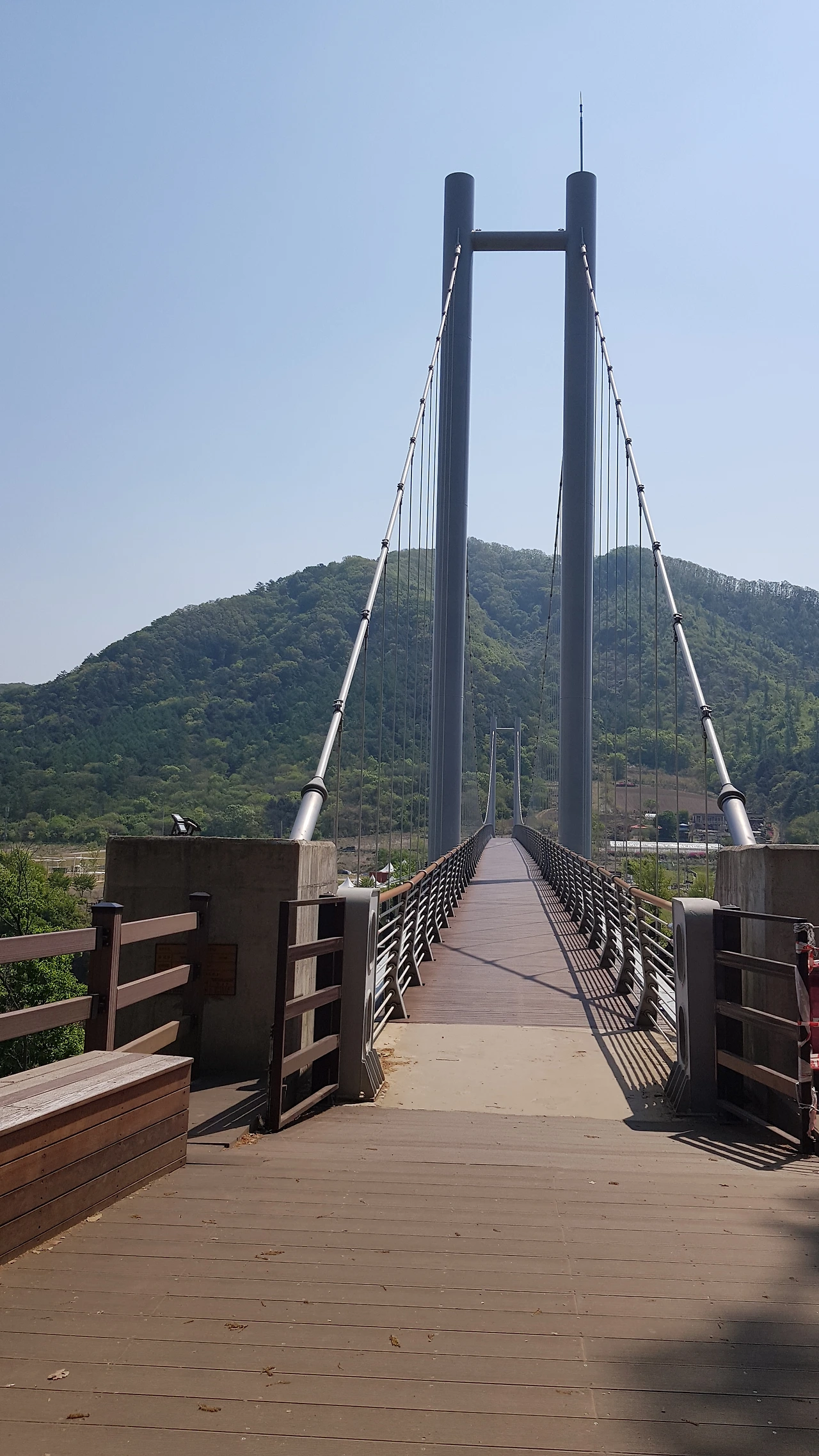 다리 끝까지 갔다가 그곳에 비치된 의자에 앉아 잠시 쉬며 혼자서 다시 건널 일이 걱정