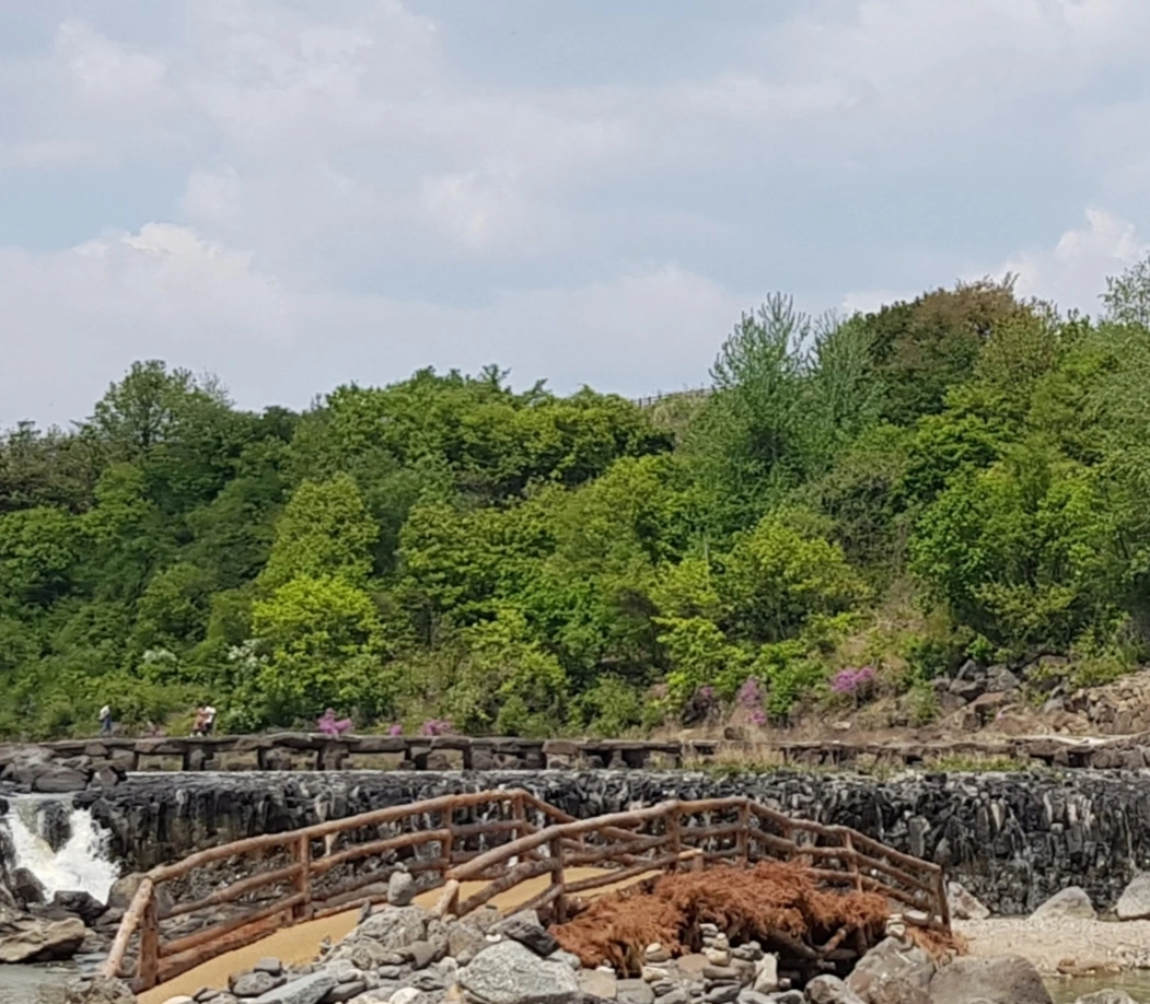 이 검고, 단단하고, 무겁다는 현무암으로 직탕폭포 위쪽에 다리를 놓았는데 이 처럼 검은 돌다리의 감성은 어쩌면 견우와 직녀가 만나는 오작교인가 싶게 청춘 남녀가 이 돌다리를 건너면 사랑이 이루어질 것 같은 감성을 지니고 있었다