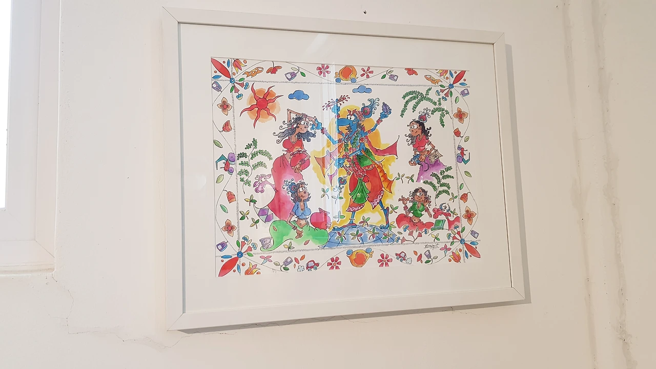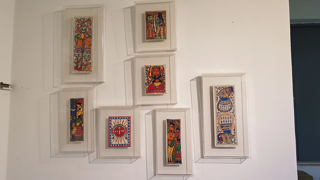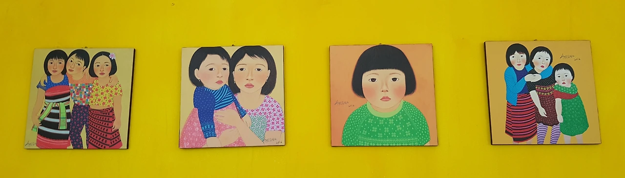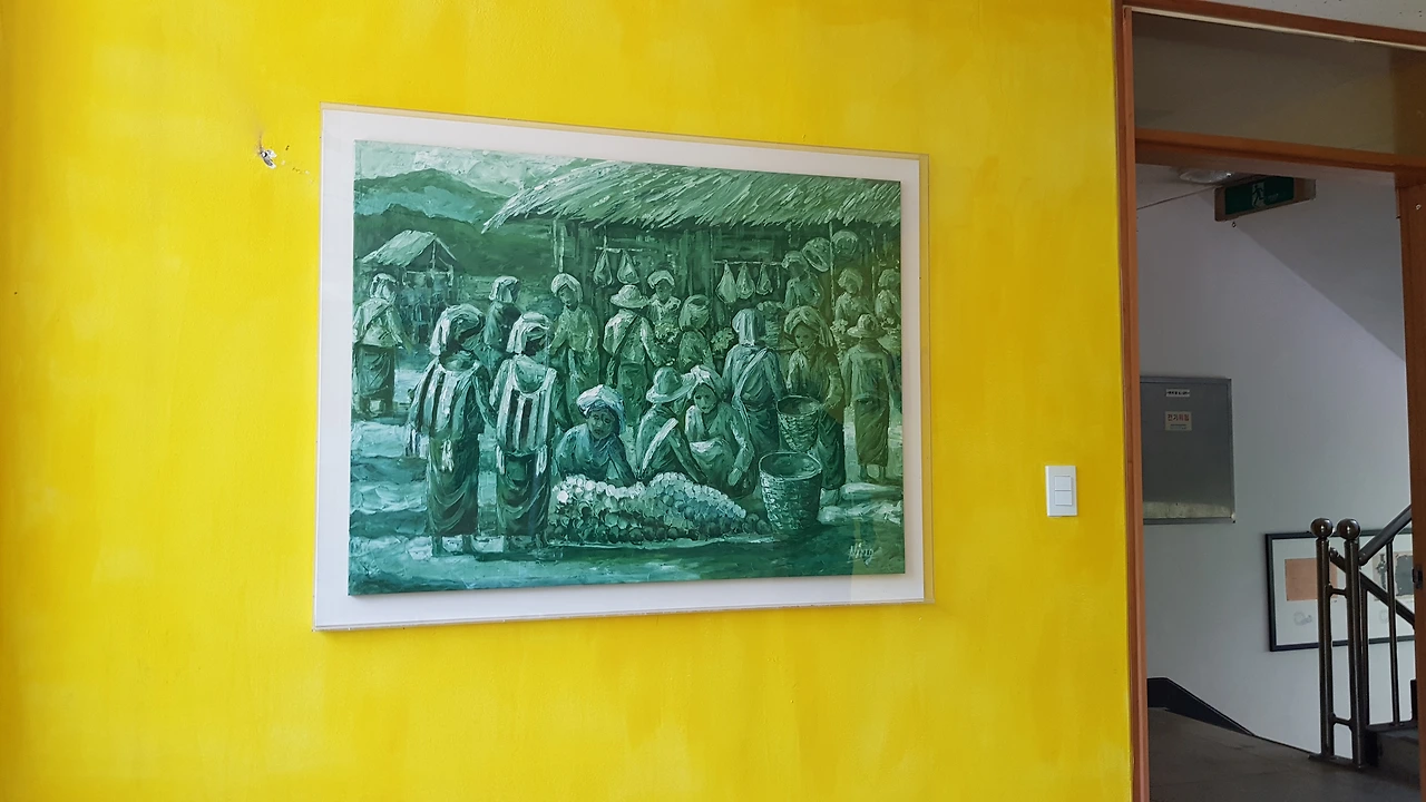 안내하시는 분의 안내로 2층으로 올라가 인도 색체풍의 화려한 접시와 그림들을 감상하며 인도 냄새가 난다 하자 정말 인도 작가의 작품이란다