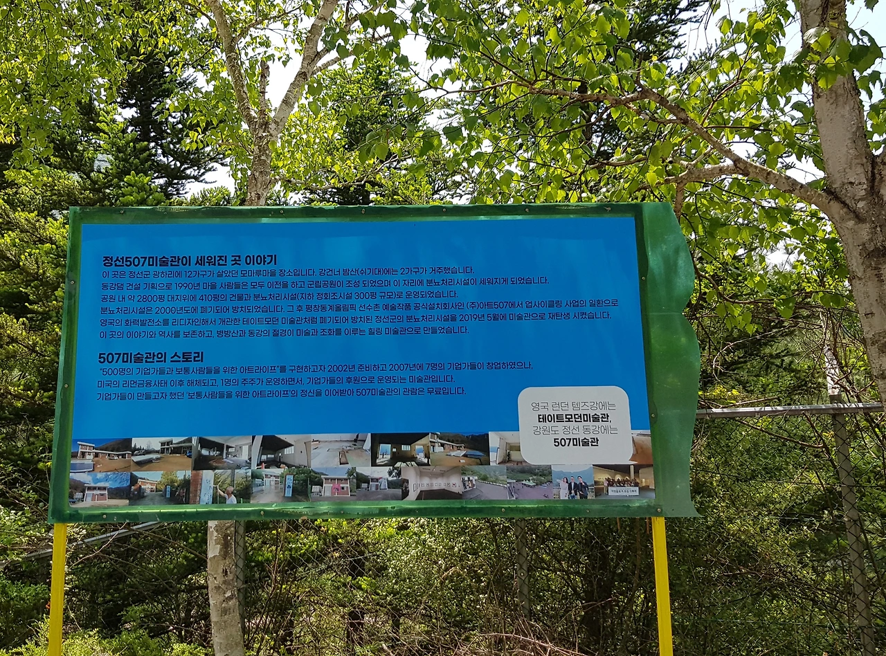 선평 역에서 시작된 드라이브 길은 병방산의 빼어난 산새와 굽이굽이 흐르는 동강의 멋진 길을 지나 도착한 507 미술관