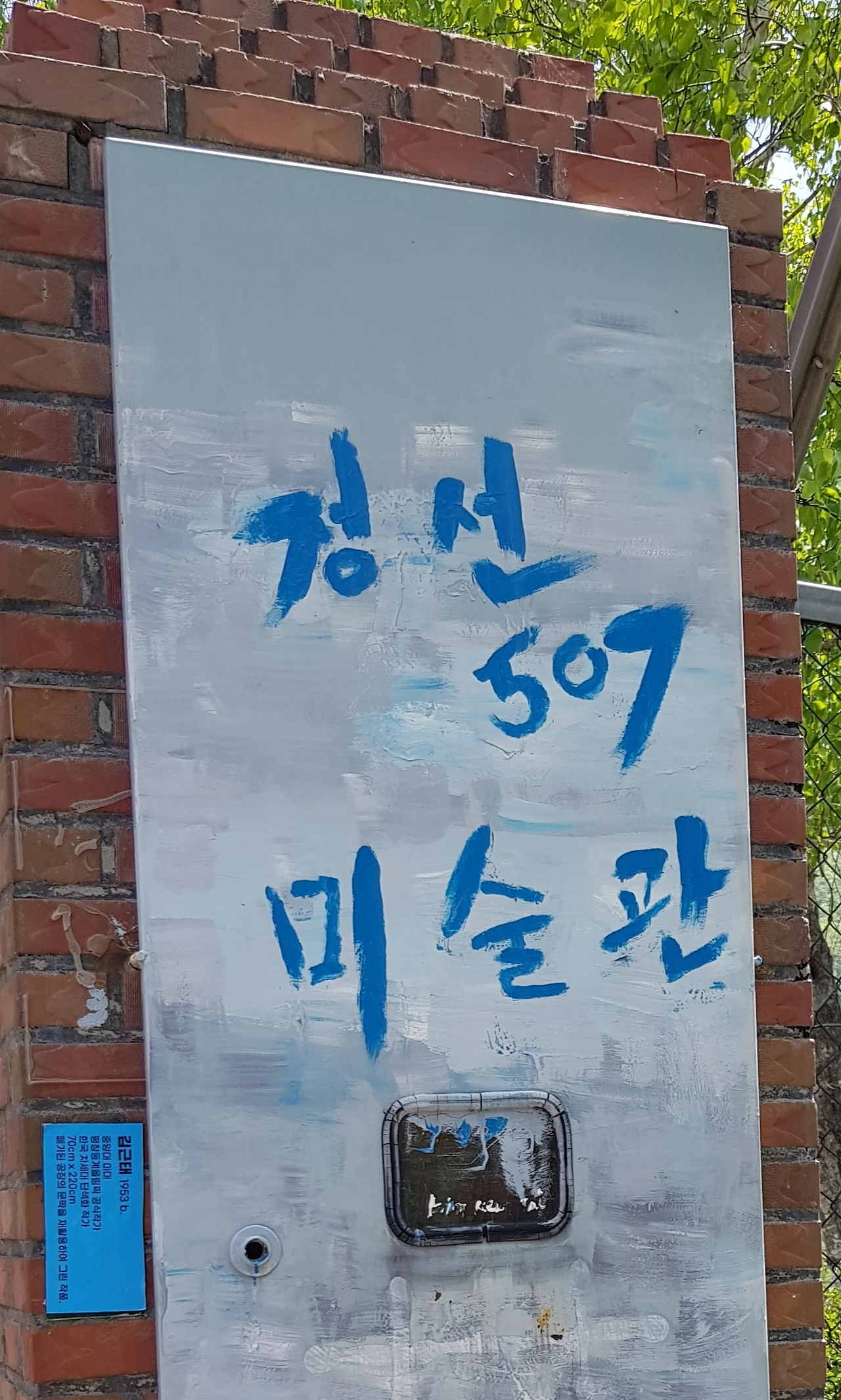 작은 꼬마 아이가 붓을 들고 장난을 친 것 같은 정선 507 미술관의 입가판은한국 차세대 단색화가이신 김근태 작가님이 직접 쓰신 작품이란다
