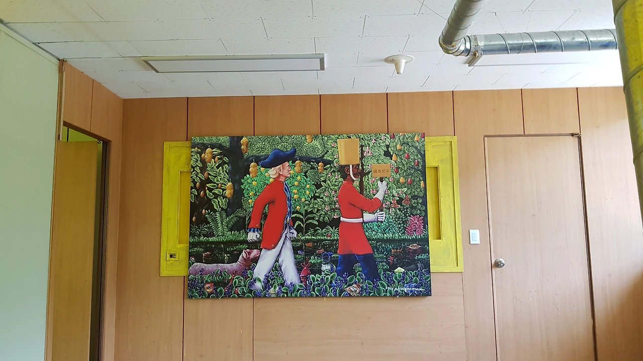 안으로 들어서자 높은 허름하고 낡은 커다란 창고 문이 반쯤 열려 있었는데 주차장에 주차를 마치자 나오신 안내를 해 주신 분을 따라가니 바로 그곳이 미술관이었다