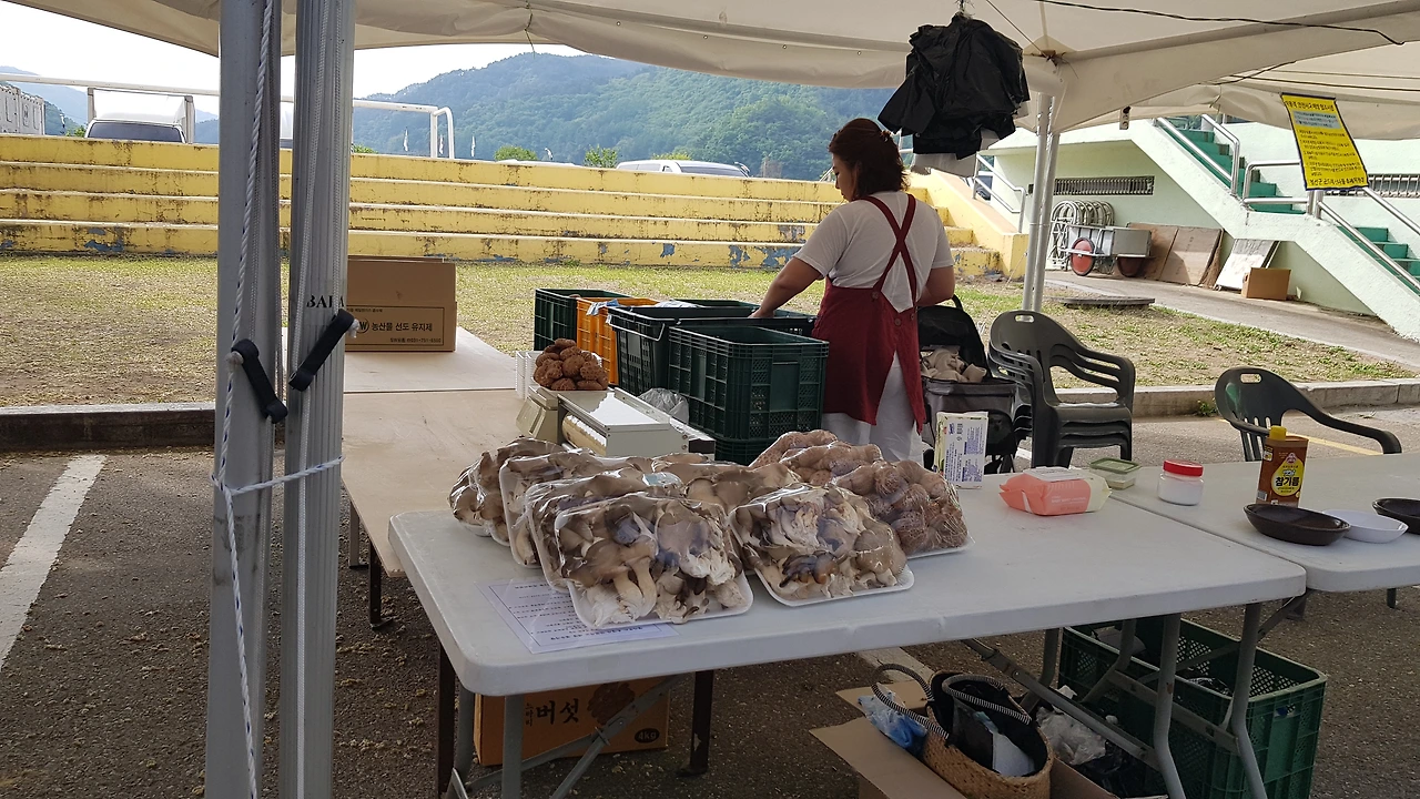 우리의 발걸음은 자연스레 그곳을 향하고 표고버섯을 만원에 한 봉지를 구매하자 맘씨 좋은 아주머니 덤을 다른 비닐봉지에 많이도 담아 주신다