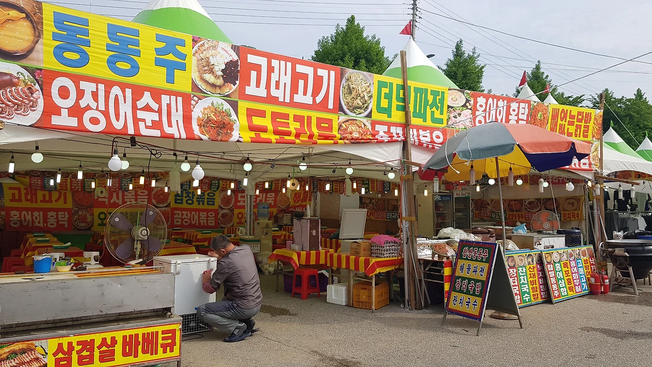 이르지만 8시 30분쯤 슬슬 바로 옆 아라리 공원 옆에서 열린다는 축제장을 찾았다