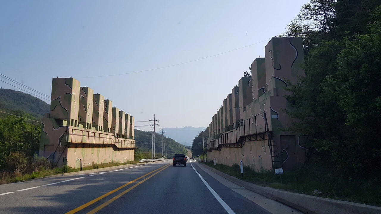 터널을 통과해 가다 보니 최전방 양구로 가는 길이라는 걸 증명하는 대전차 방어벽도 지나간다
