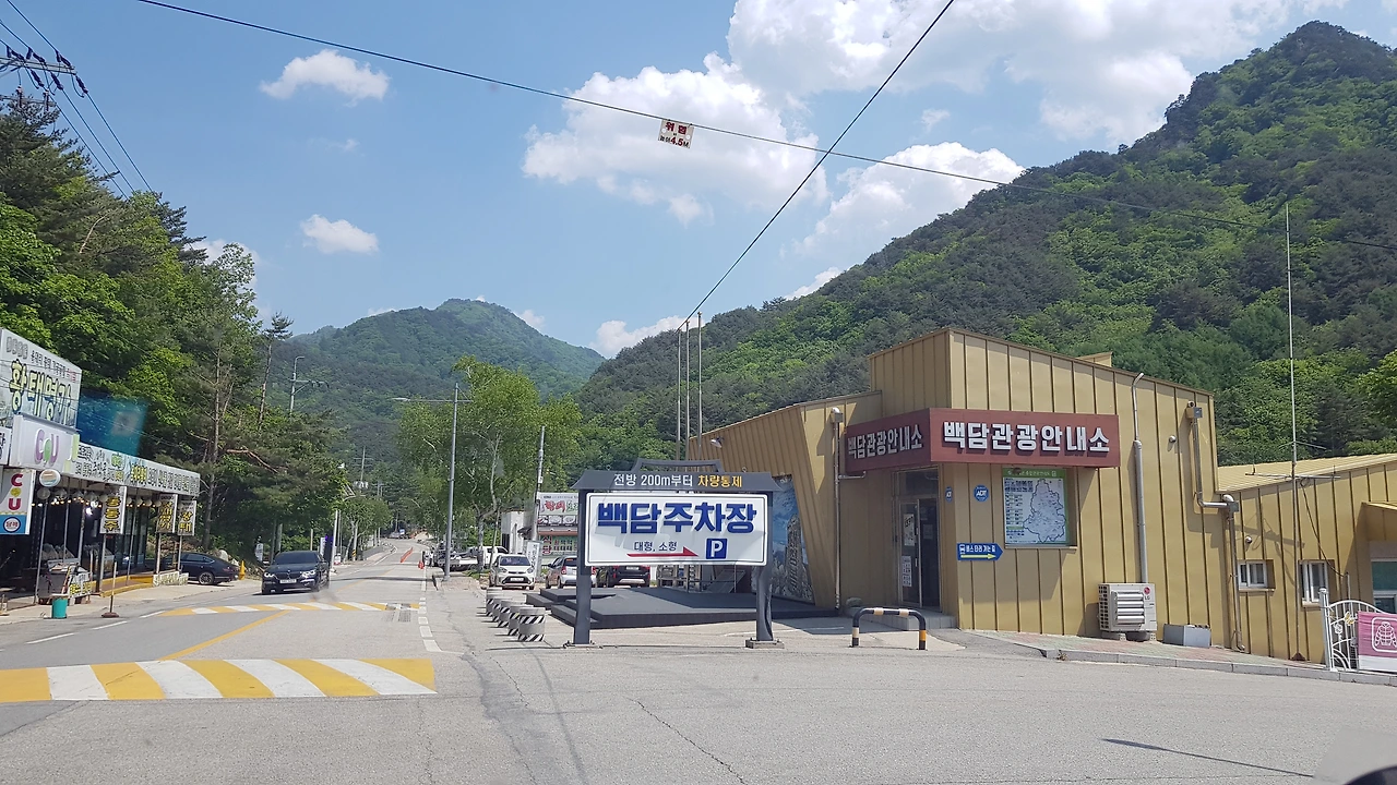 역시 전방임을 알리는 방어벽을 지나고 주차장에 도착 차를 세워두고 백담사까지는 버스로 가야 한다고