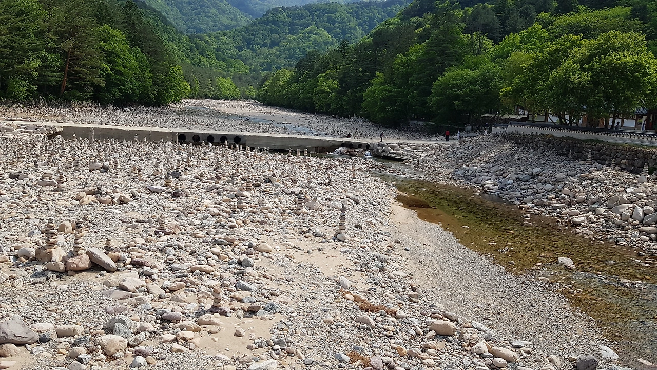 씁쓸한 마음에 마당을 한 바퀴 돌아 냇가로 나오니 계곡에는 수많은 돌탑들이 있었다