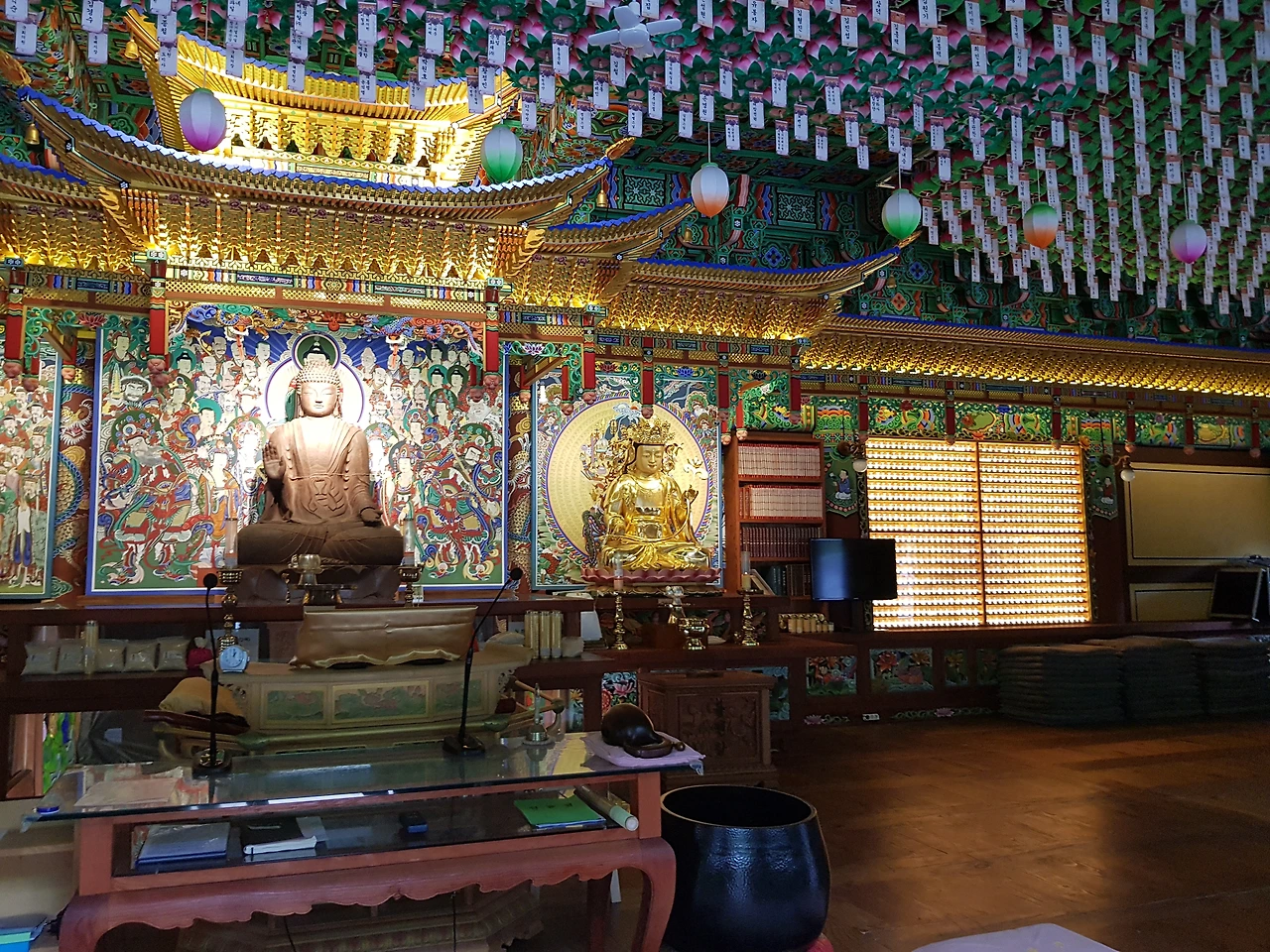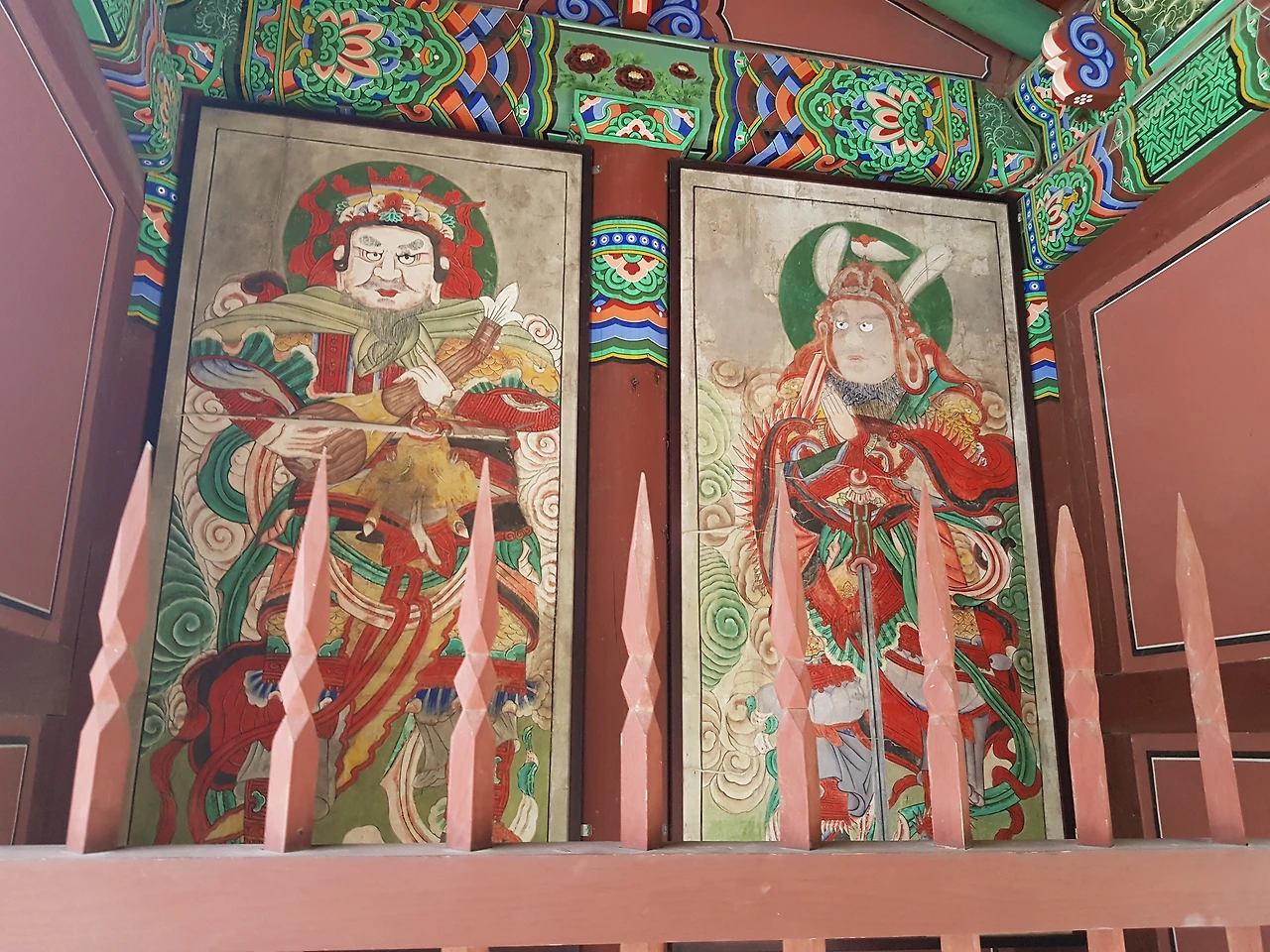 들어서니 마주하는 사천왕상이 조각이 아닌 그림으로 그려져 있었다