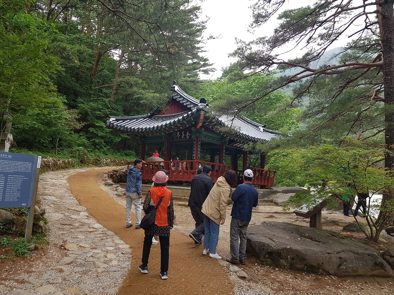 무릉계곡 입구의 나무데크 걷는 길은 상큼함과 편안함을 주었고 진정한 친구 관계는 쇠처럼 단단하고 난초향처럼 그윽해야 한다는 금란정을 지나니 넓은 바위의 무릉계가 펼쳐졌다