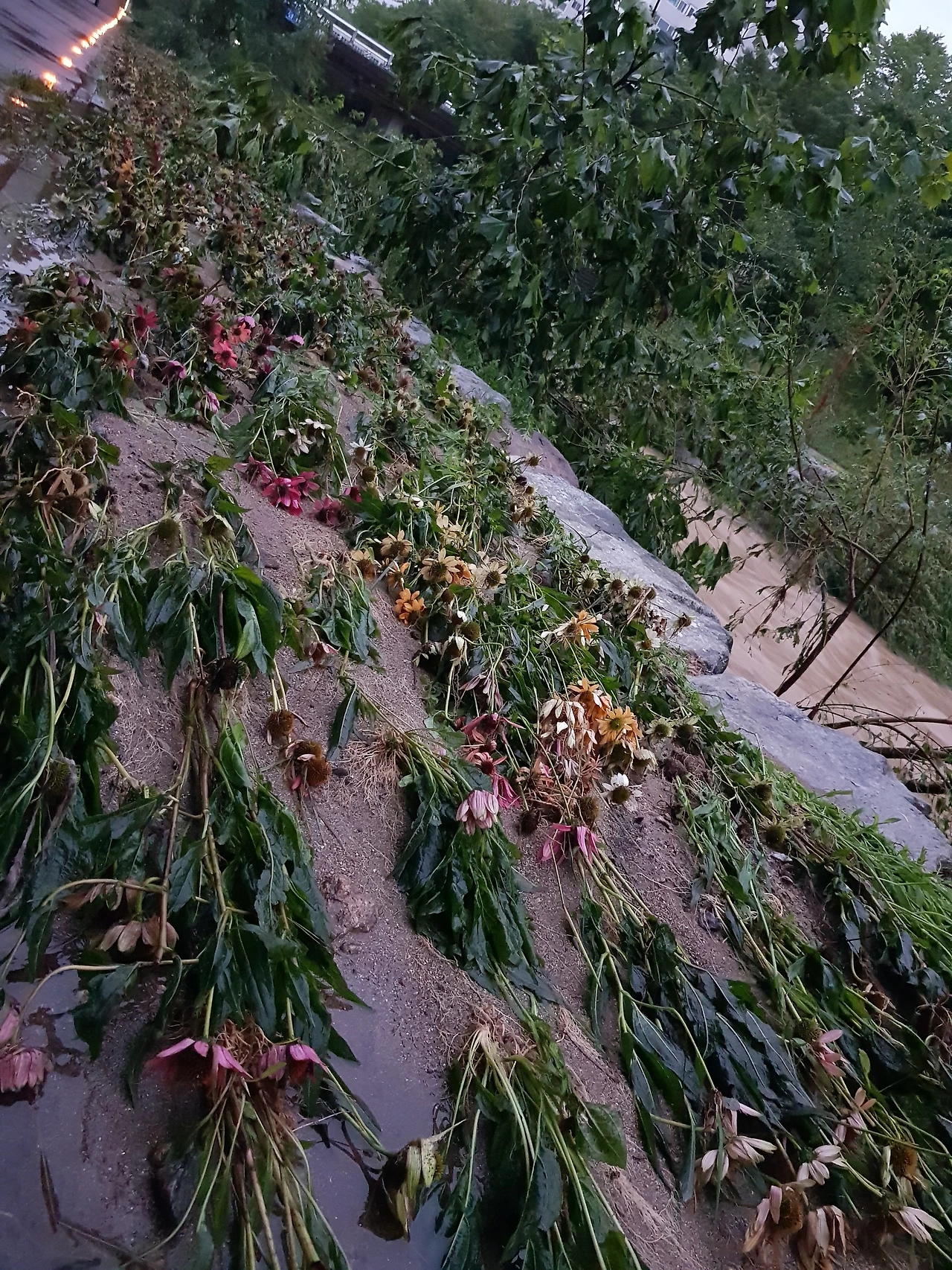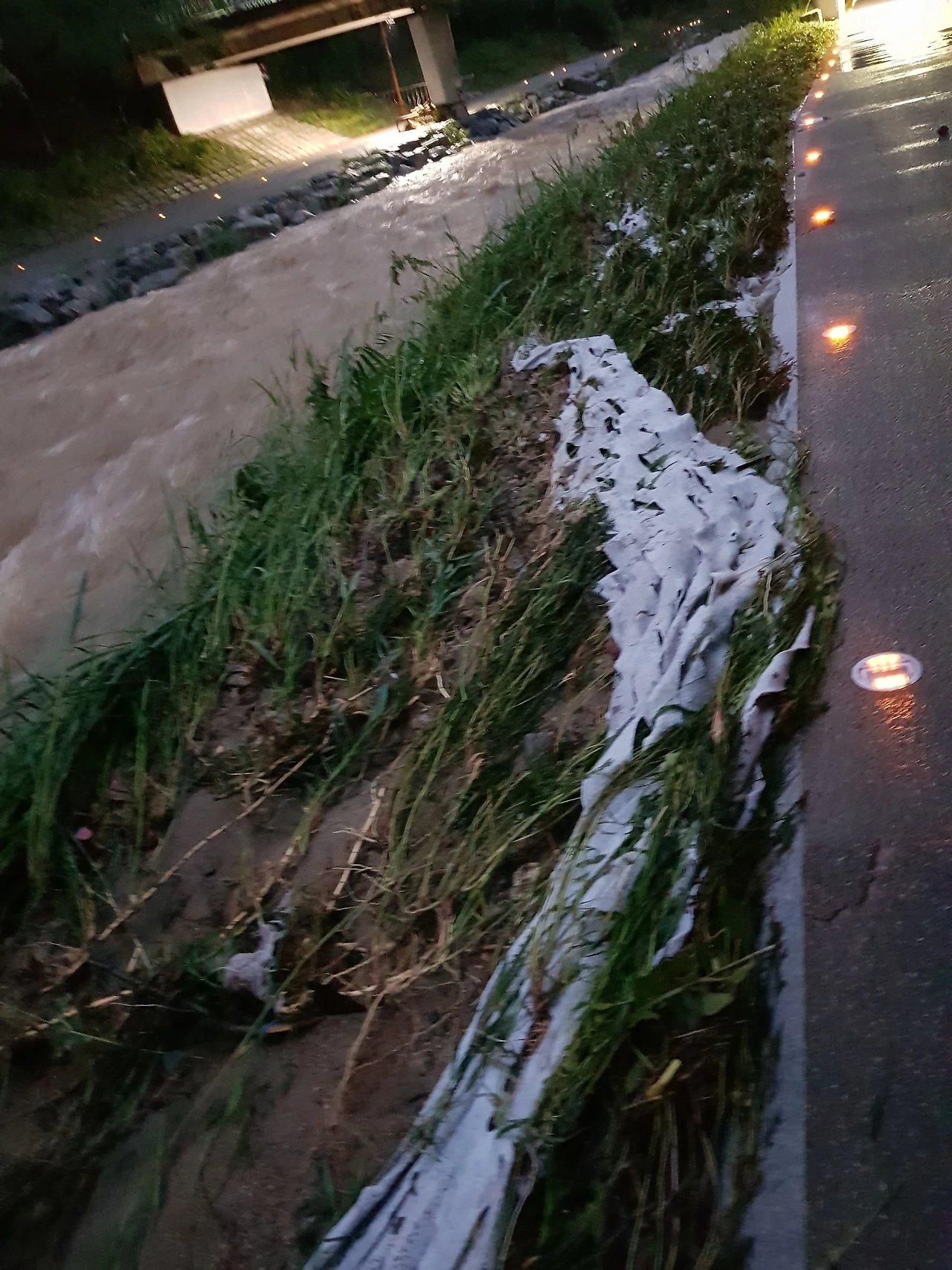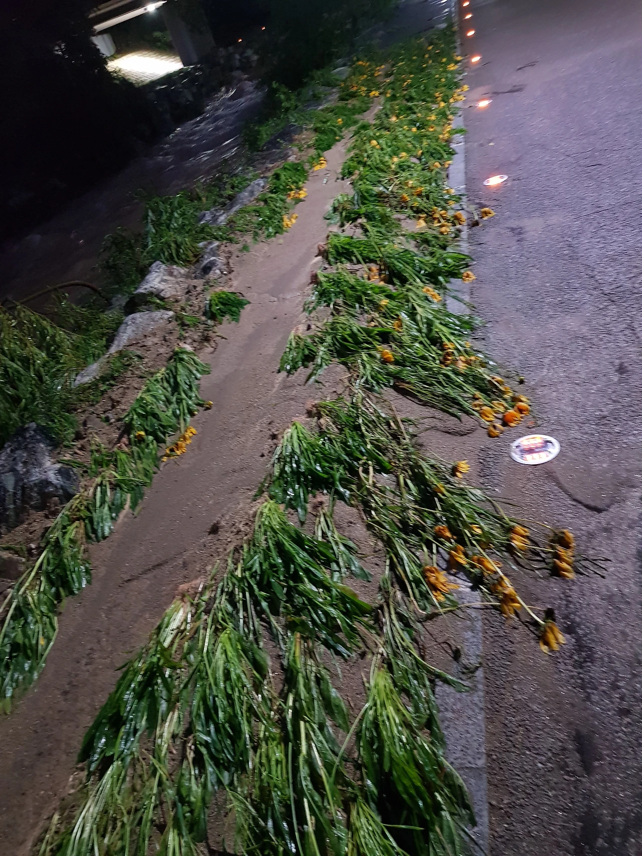 물길 나눈 펜스도 무너져있고