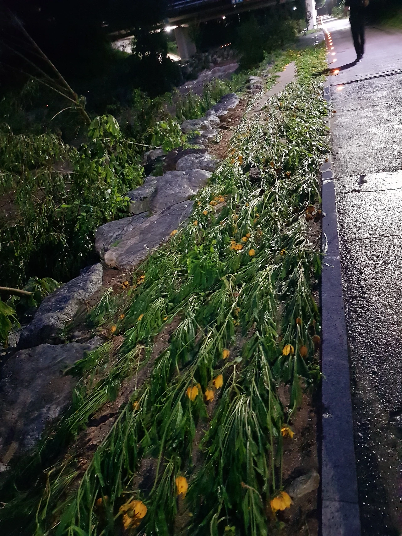 애키네시마 꽃들 모두 누워 울고 있구나