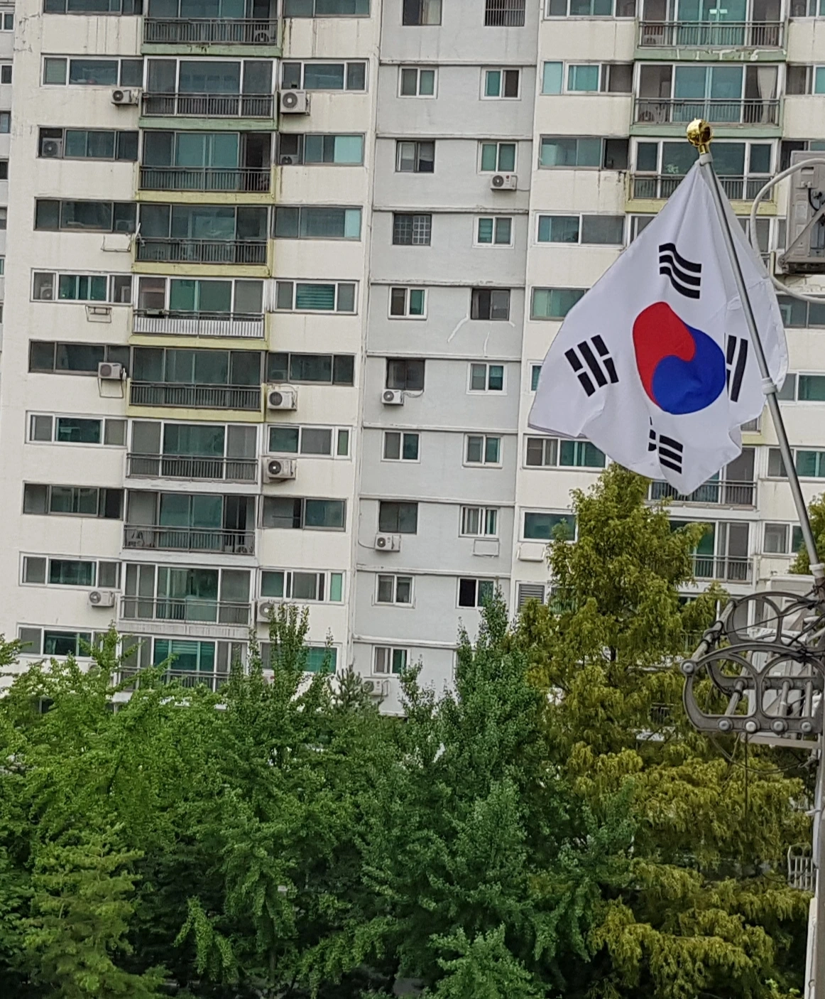 발코니 창밖에 태극기를 건다