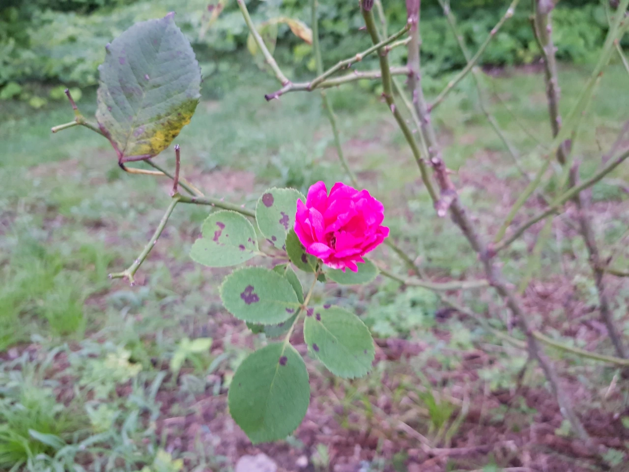 호숫길 둔덕 가녀린 장미야