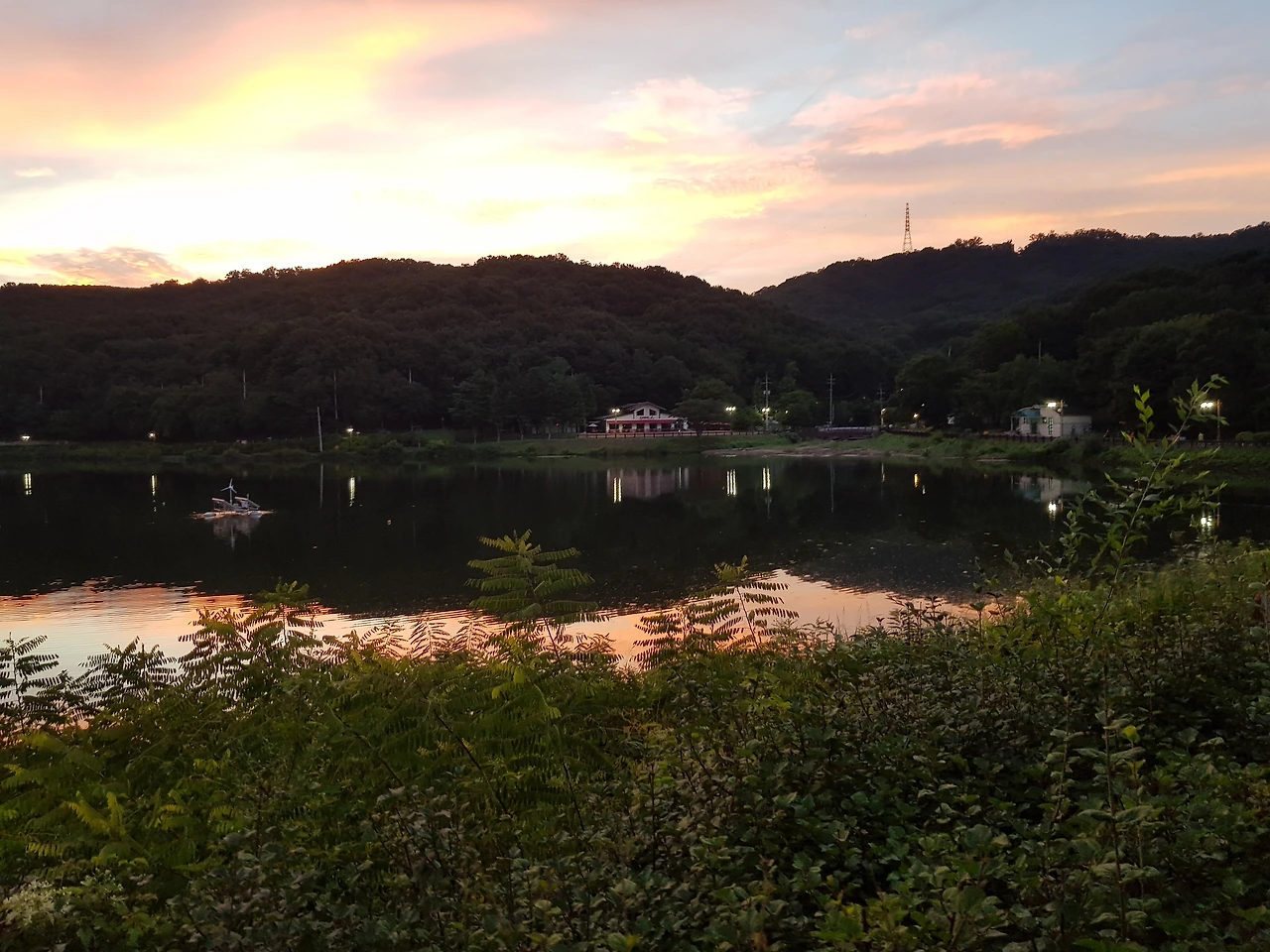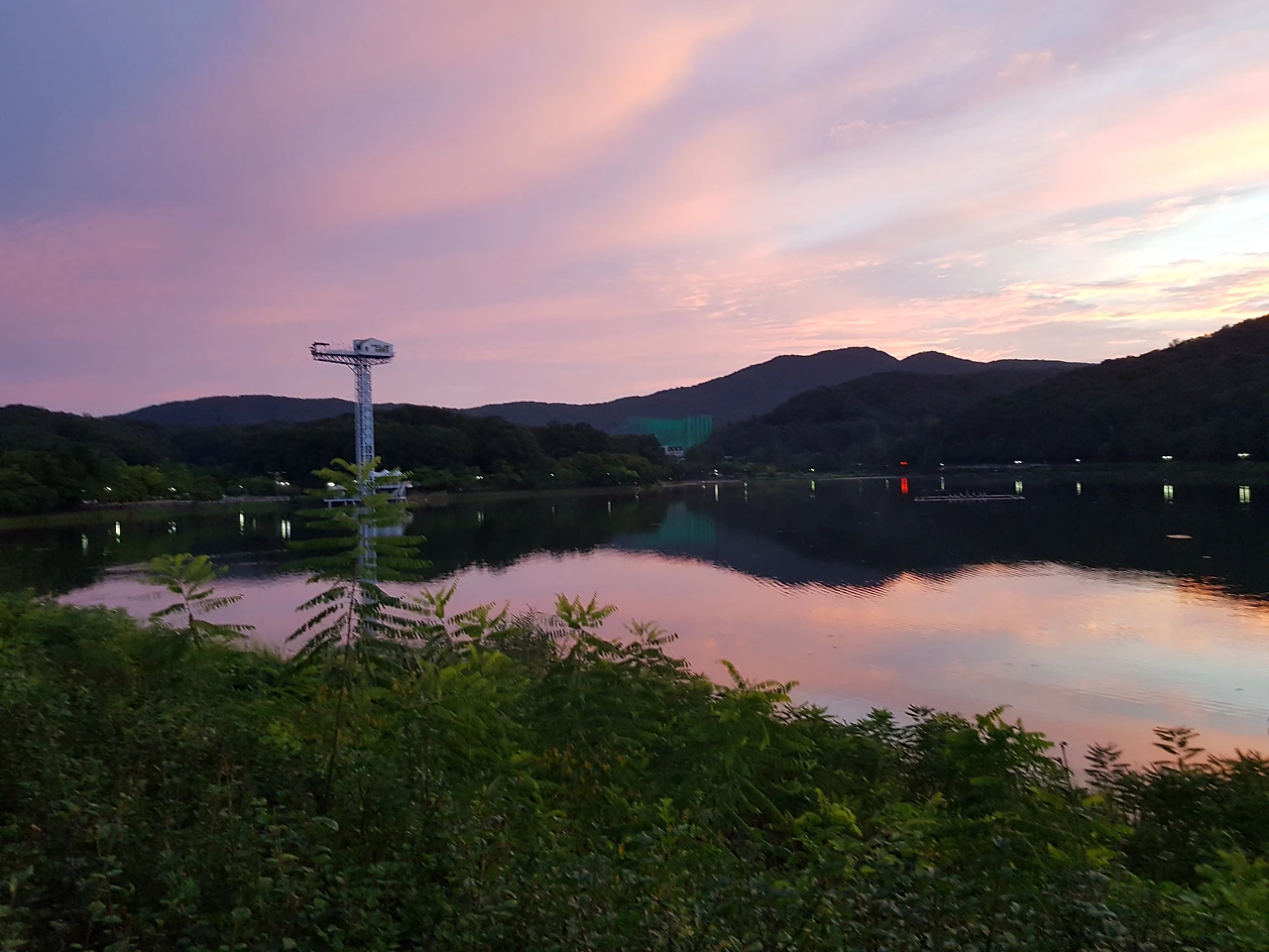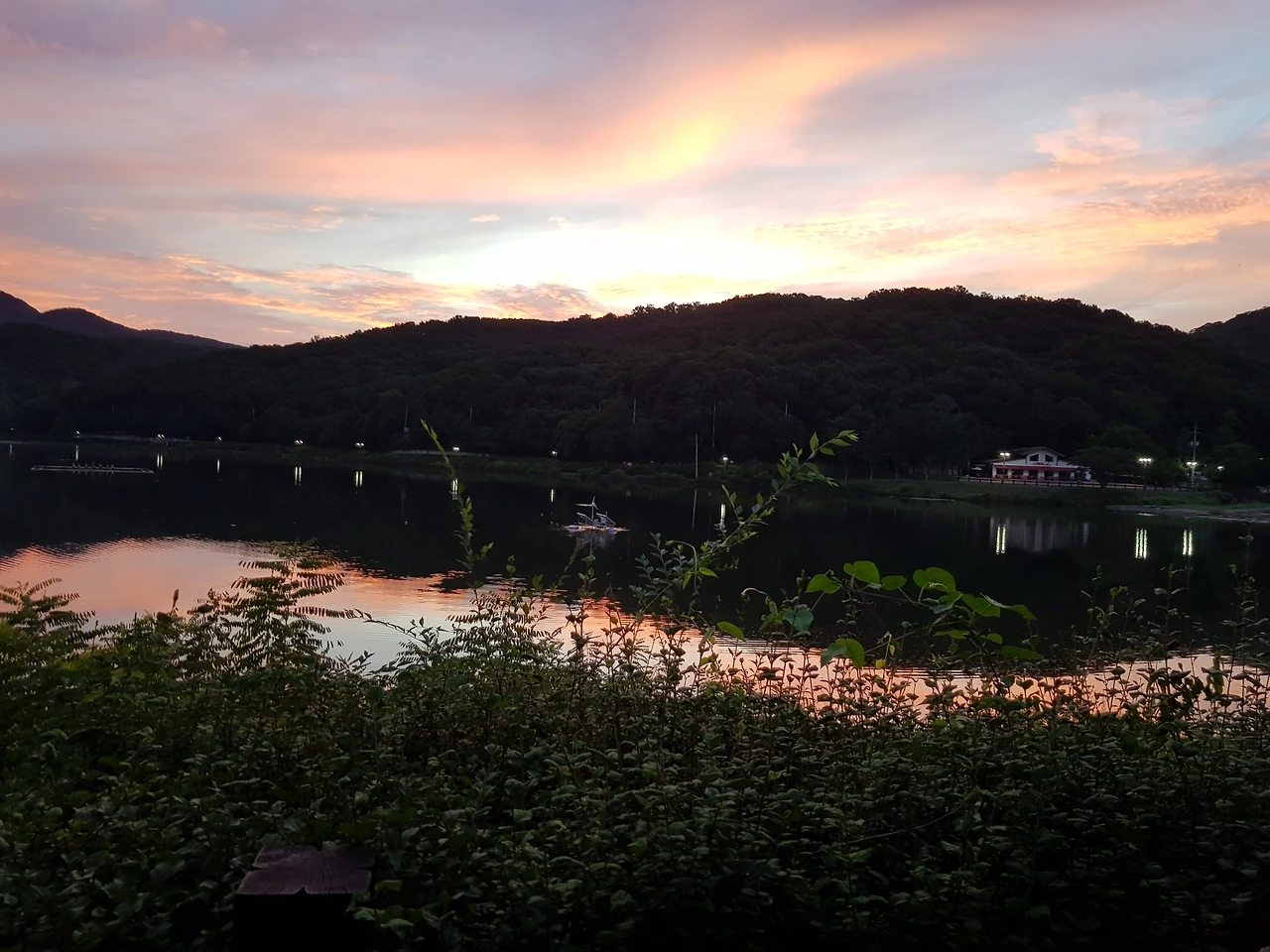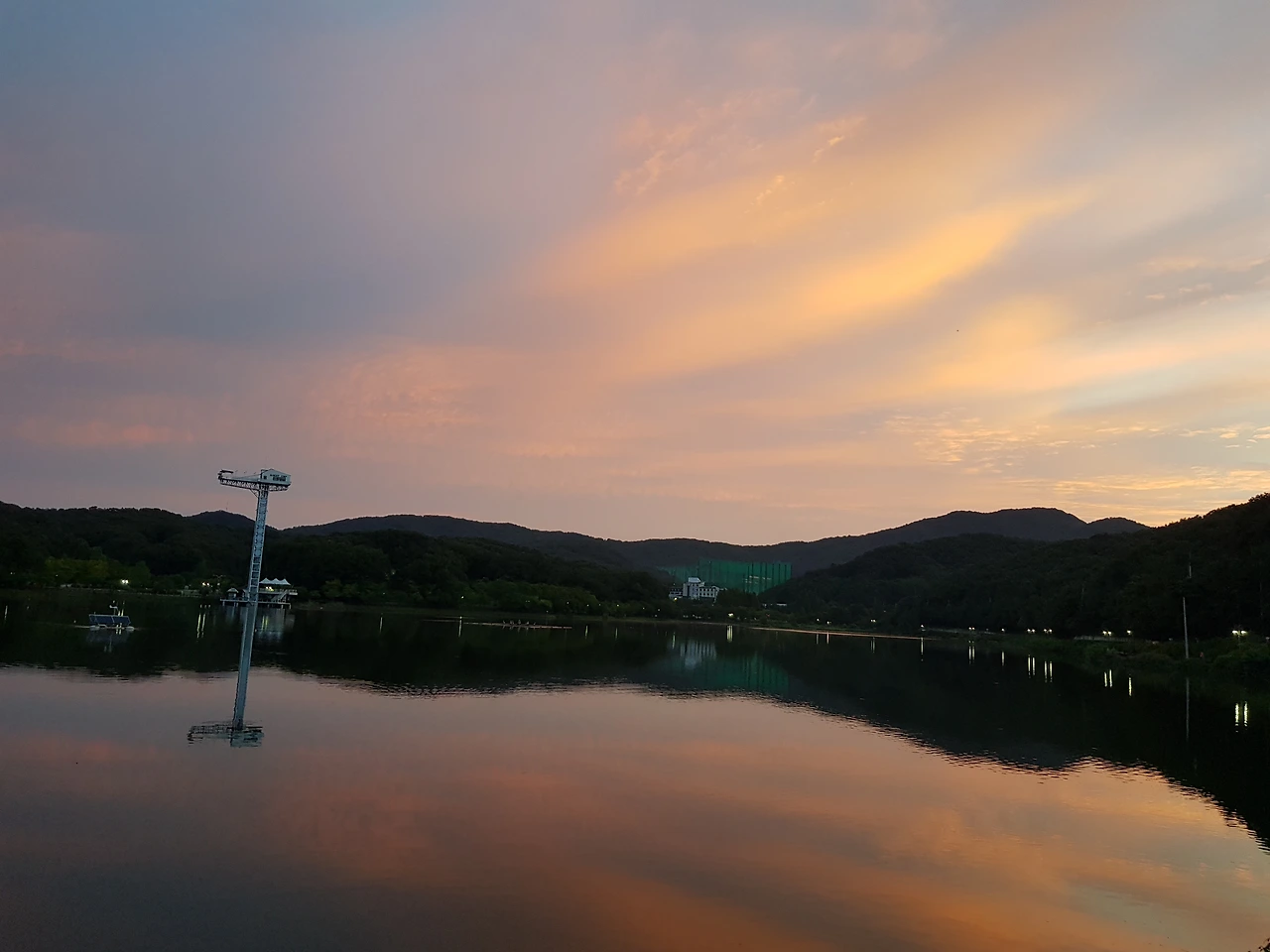 깜짝 놀라 호수에 풍덩 뛰어들었다