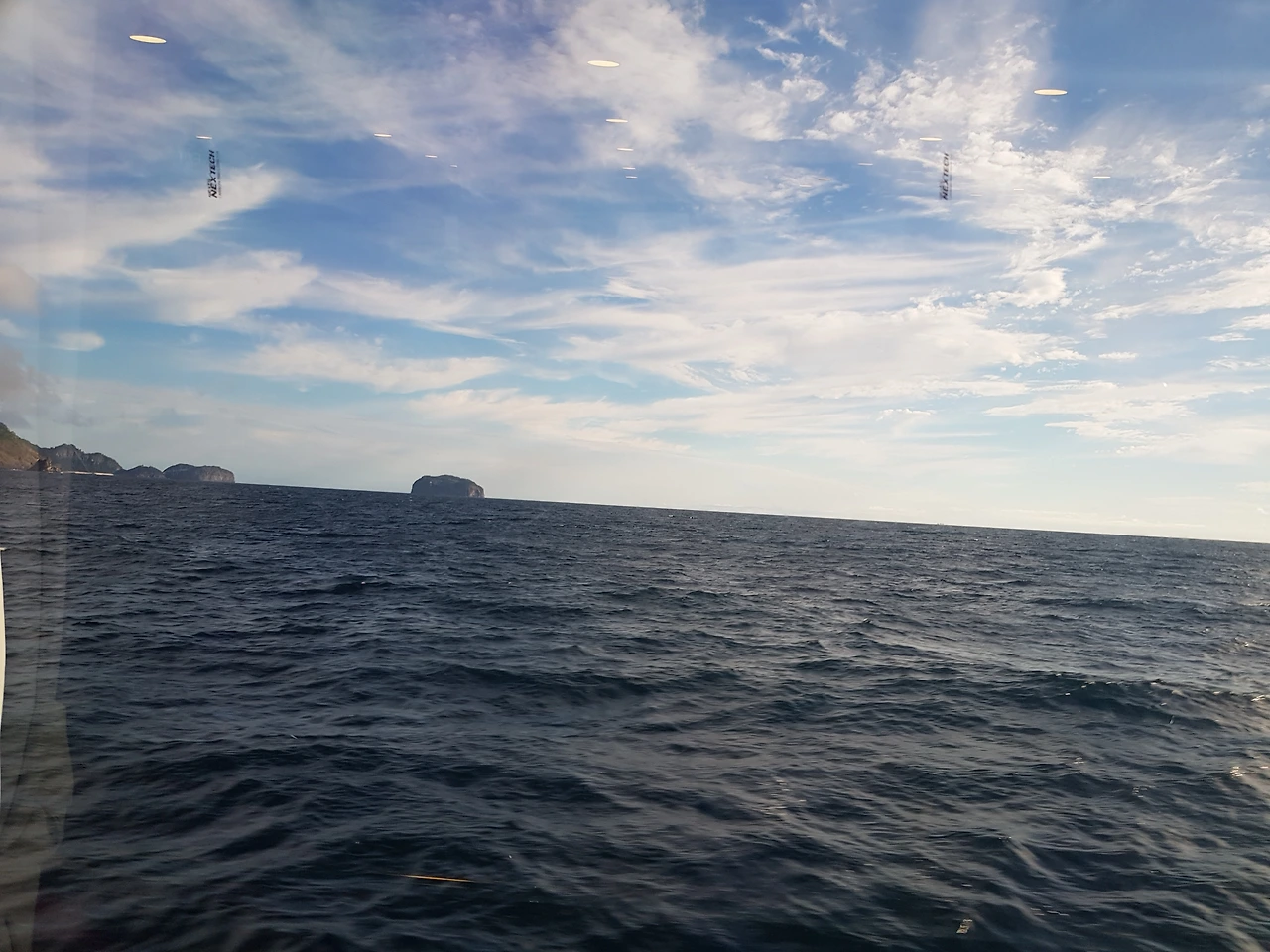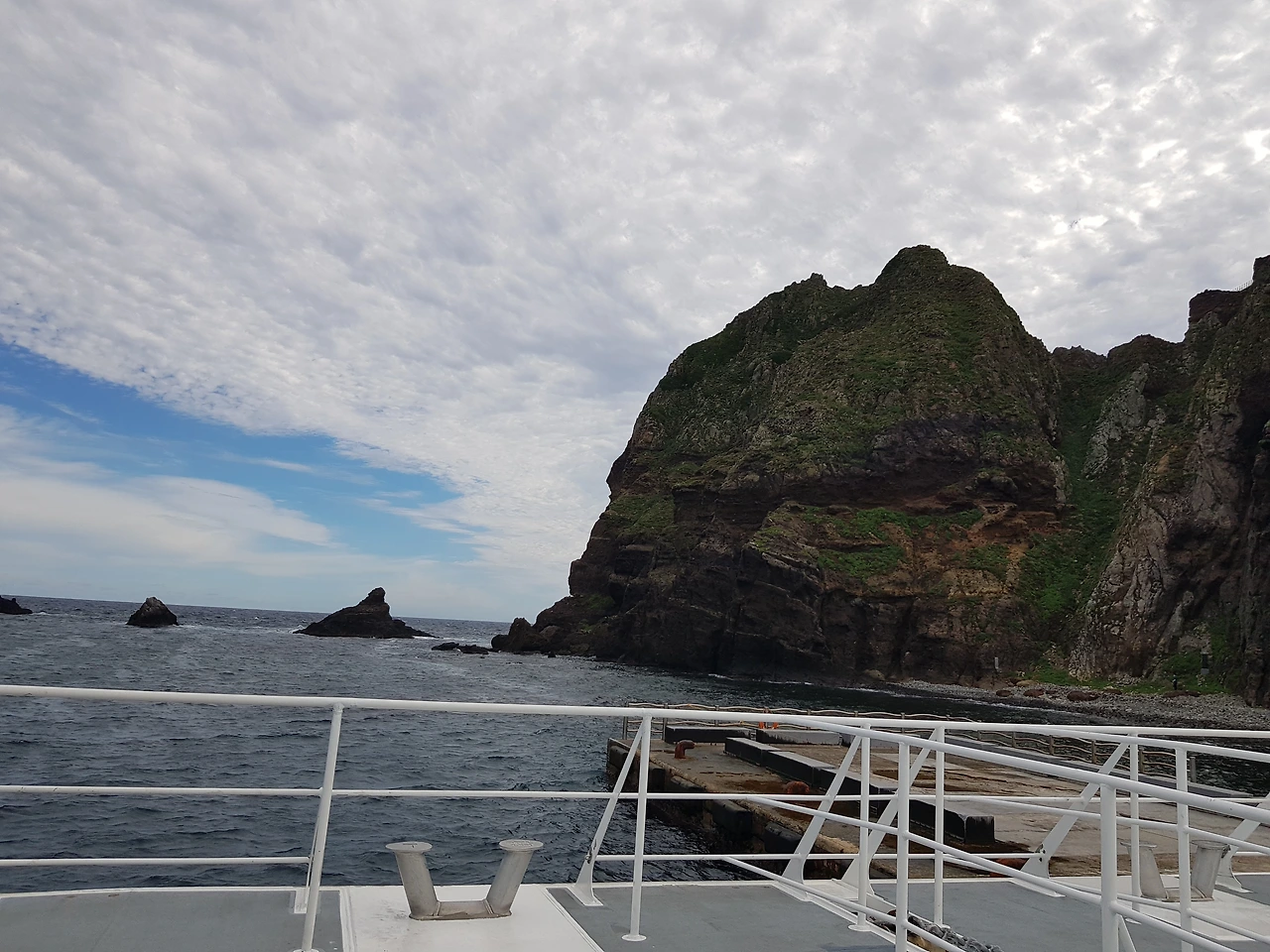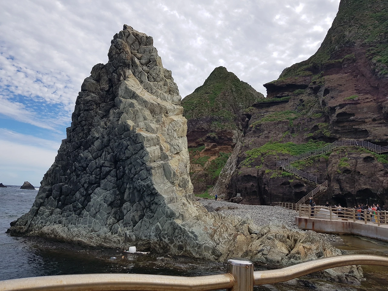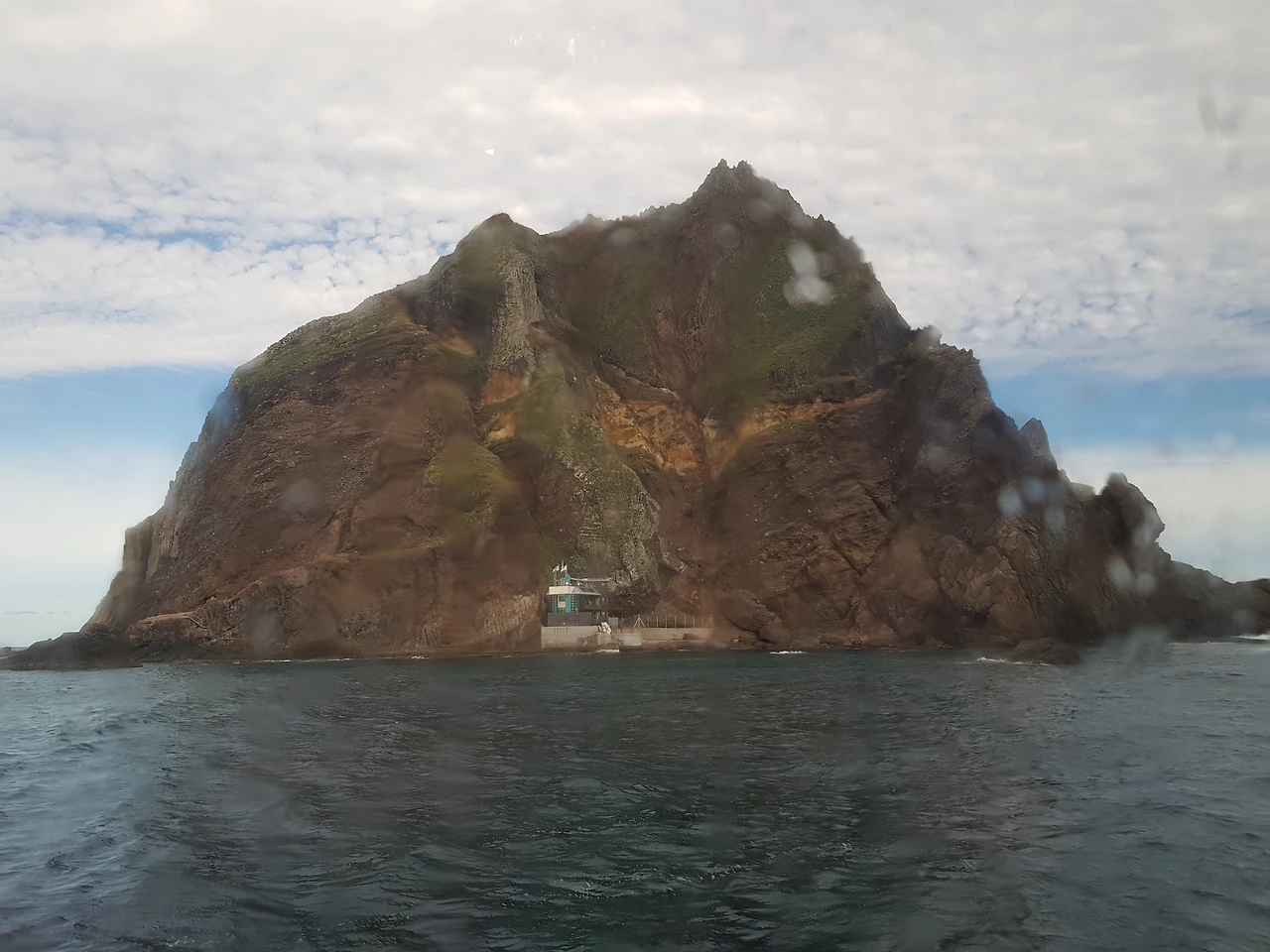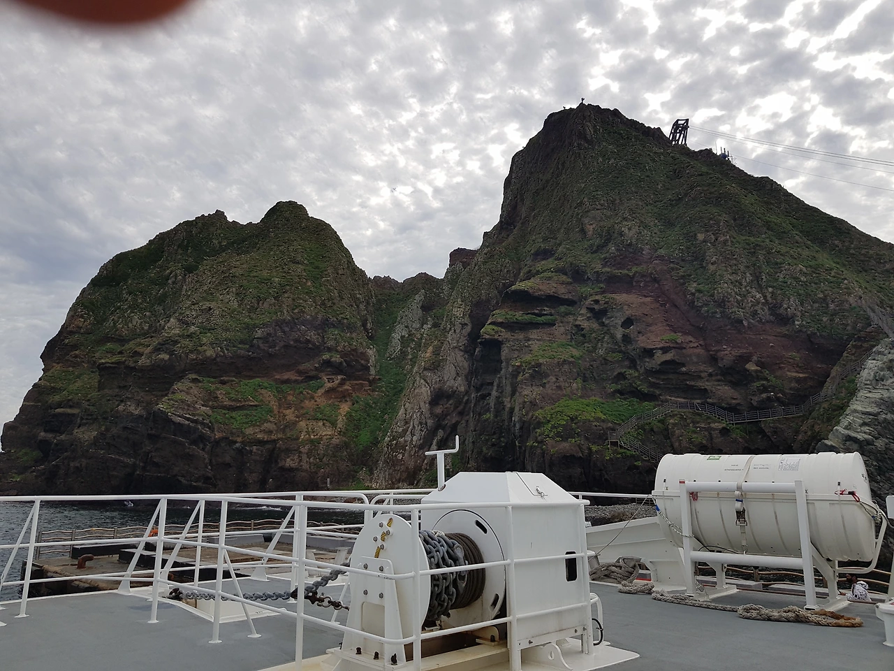 독도를 향해가는 배는 1층에 승선했는데 앞쪽 창 측이 빈자리가 많아 자리를 옮겨 달리는 배와 부딪치는 파도를 응원하며 시간 가는 줄 모르고 가고 있는데 가까이에 섬이 보이더니 9시 20분경 독도 입도에 대한 안내방송이 나온다